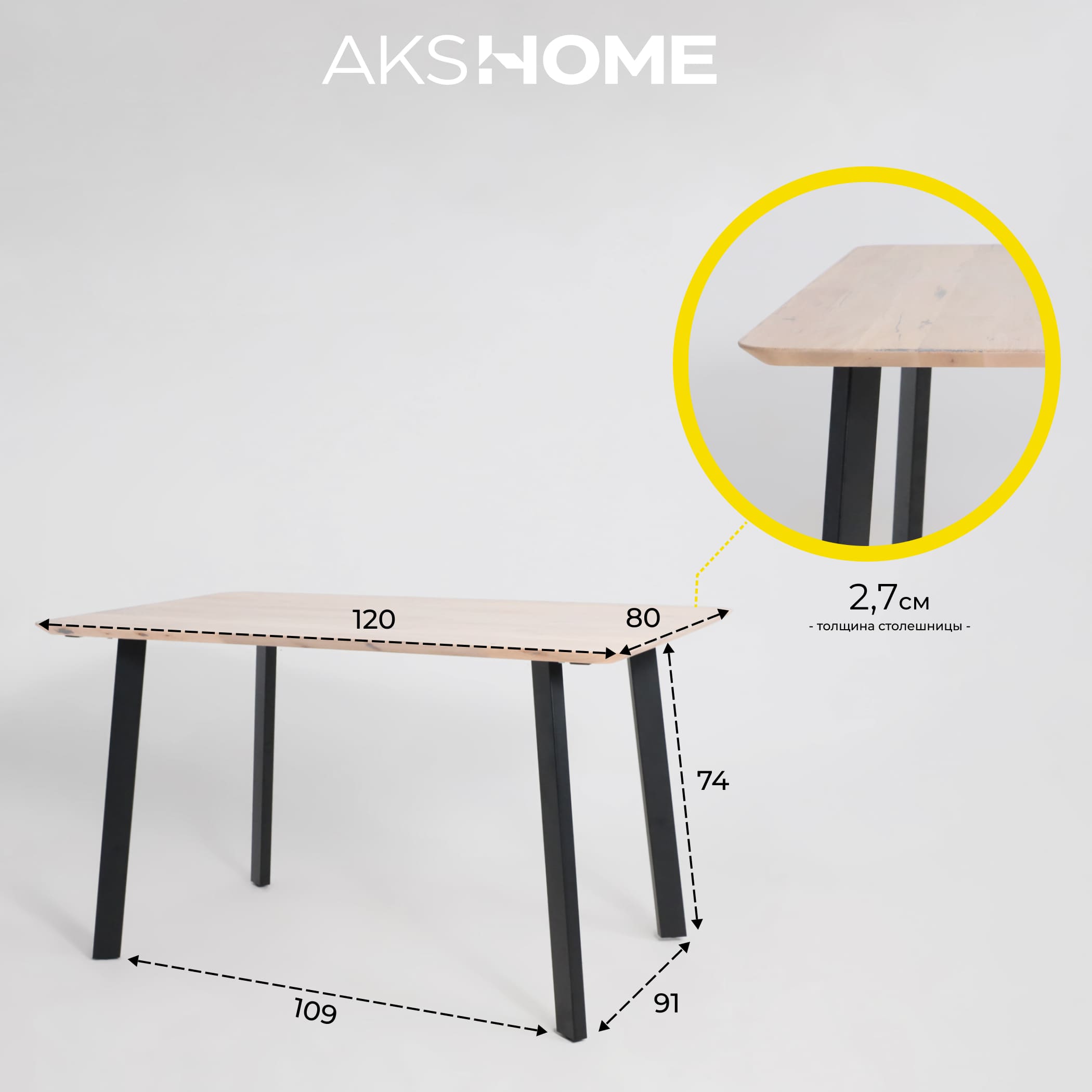 Стол МАЙОН, 120*80*74, дуб беленый/черный (ПР-2 DSW (Т27) (02) КС-60)