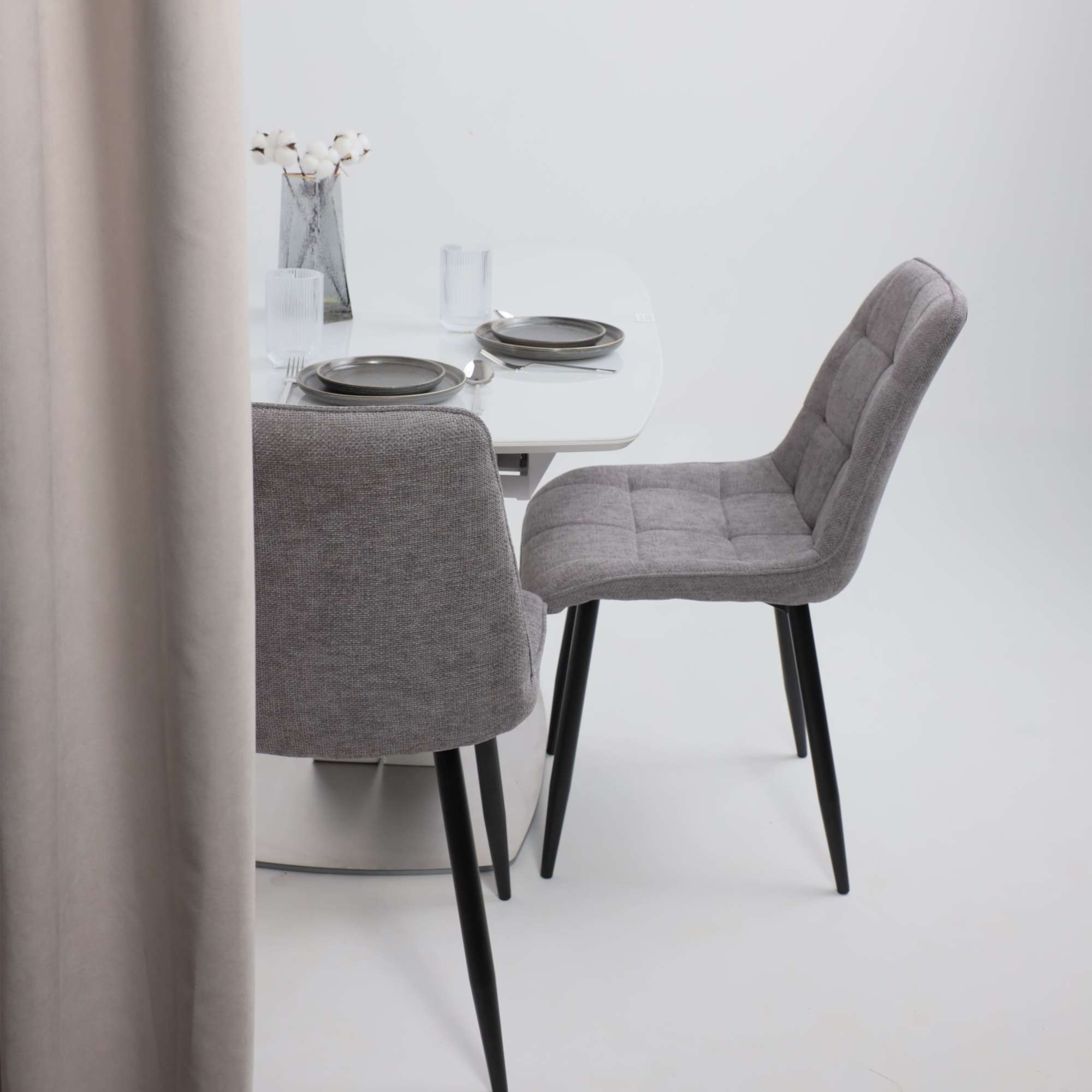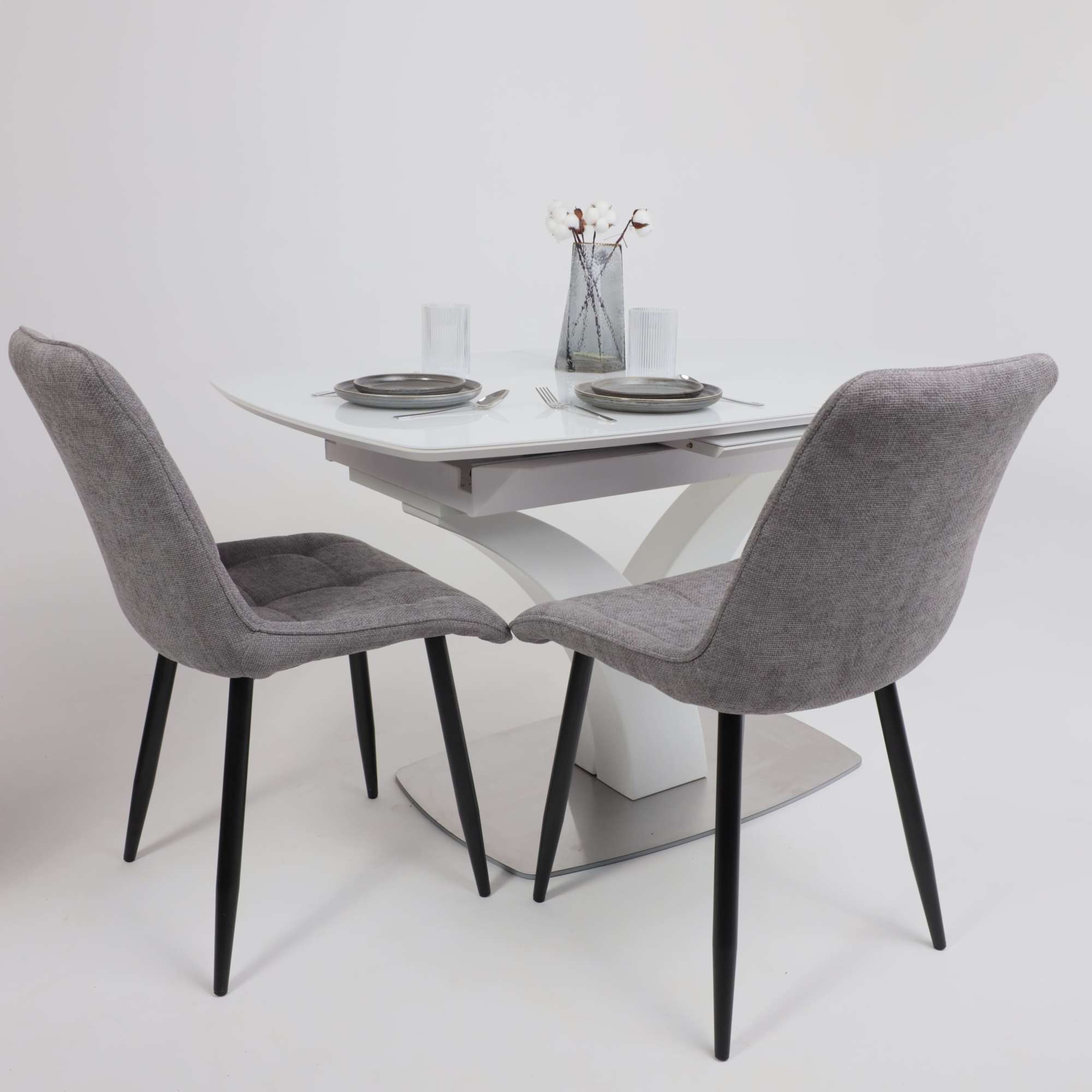 Стол НОТР ДАМ MODERNE, стекло Optiwhite 1400(1800)*850, Белый/Белый Муар