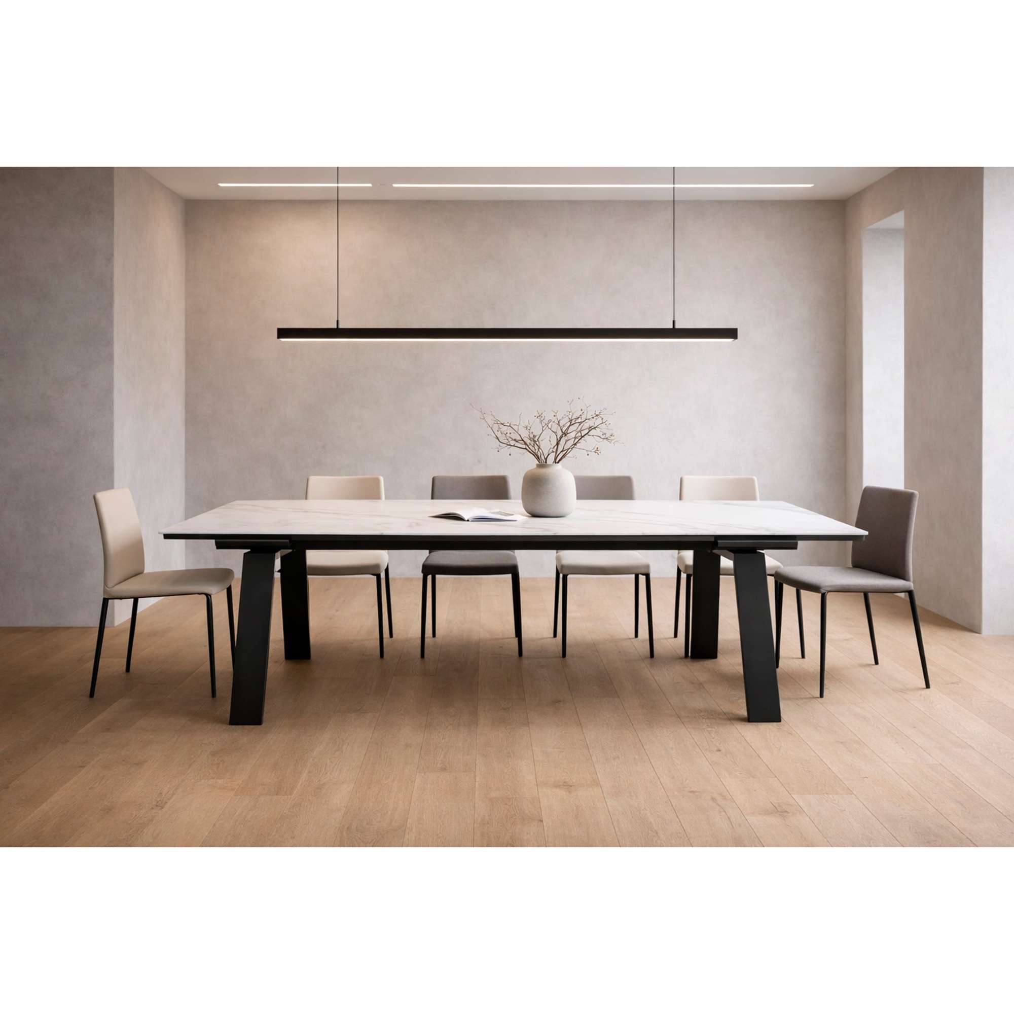 Стол PANAMA SLIDE-230, раздвижной 230(310)*115, МРАМОР СВЕТЛЫЙ- COMPAKT CER/Черный