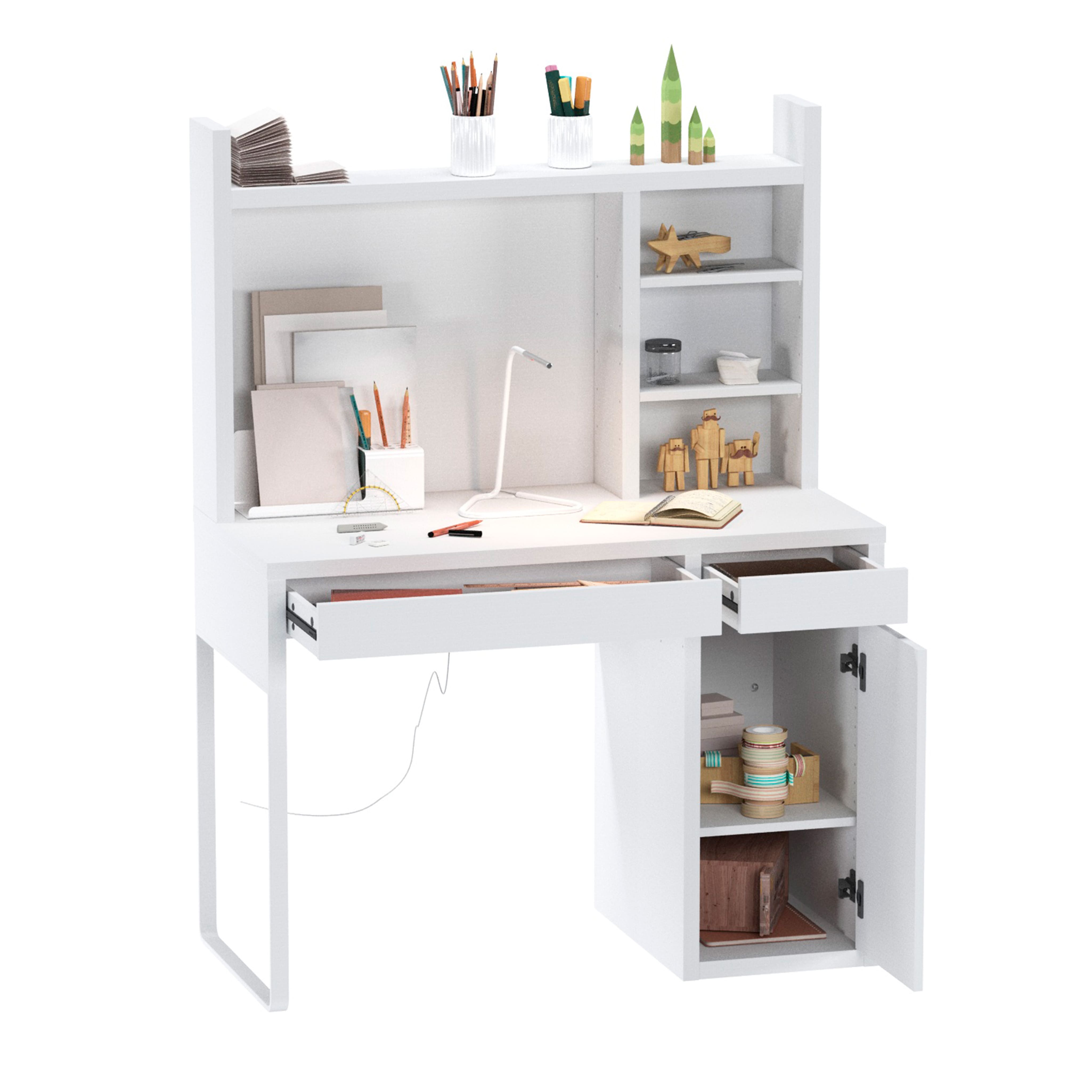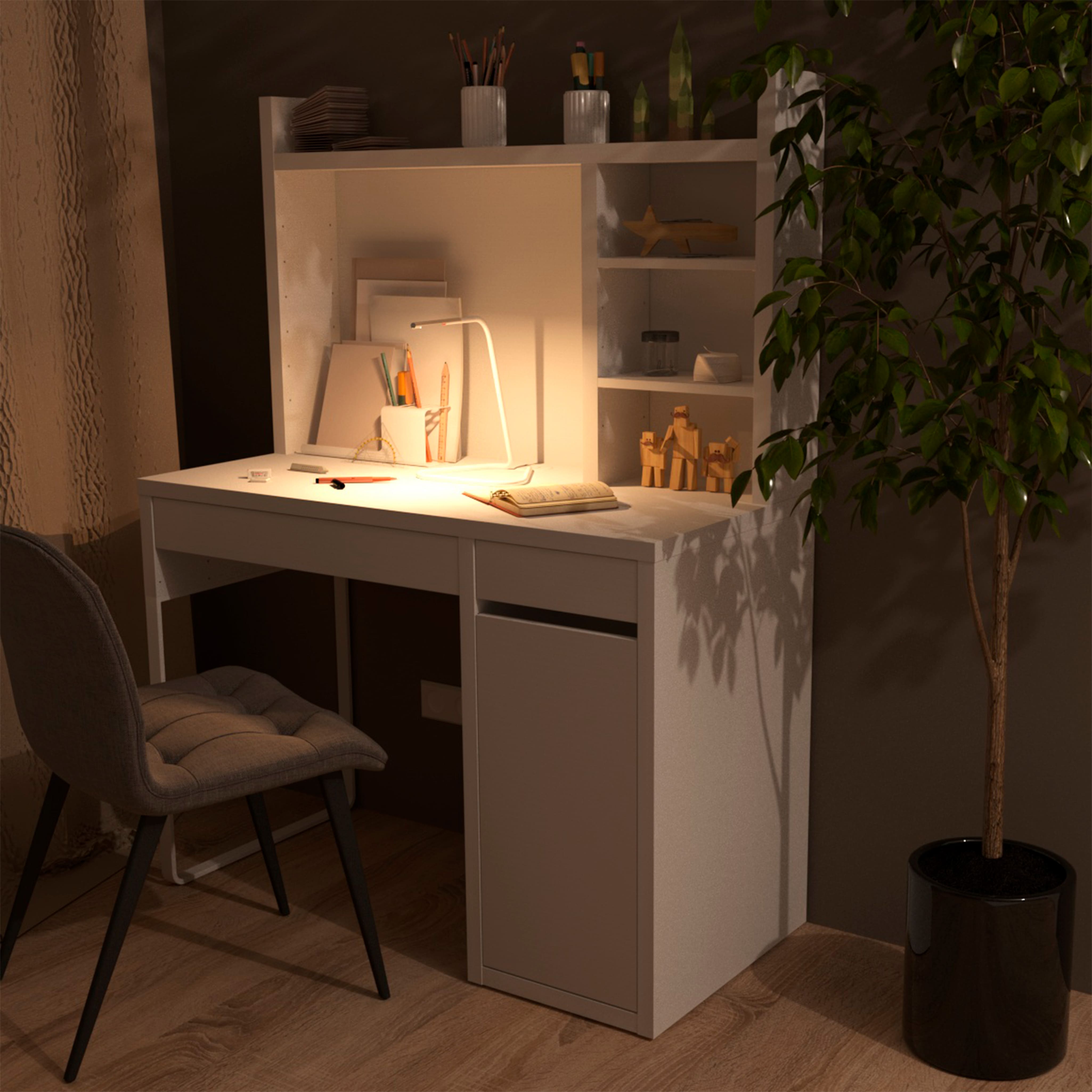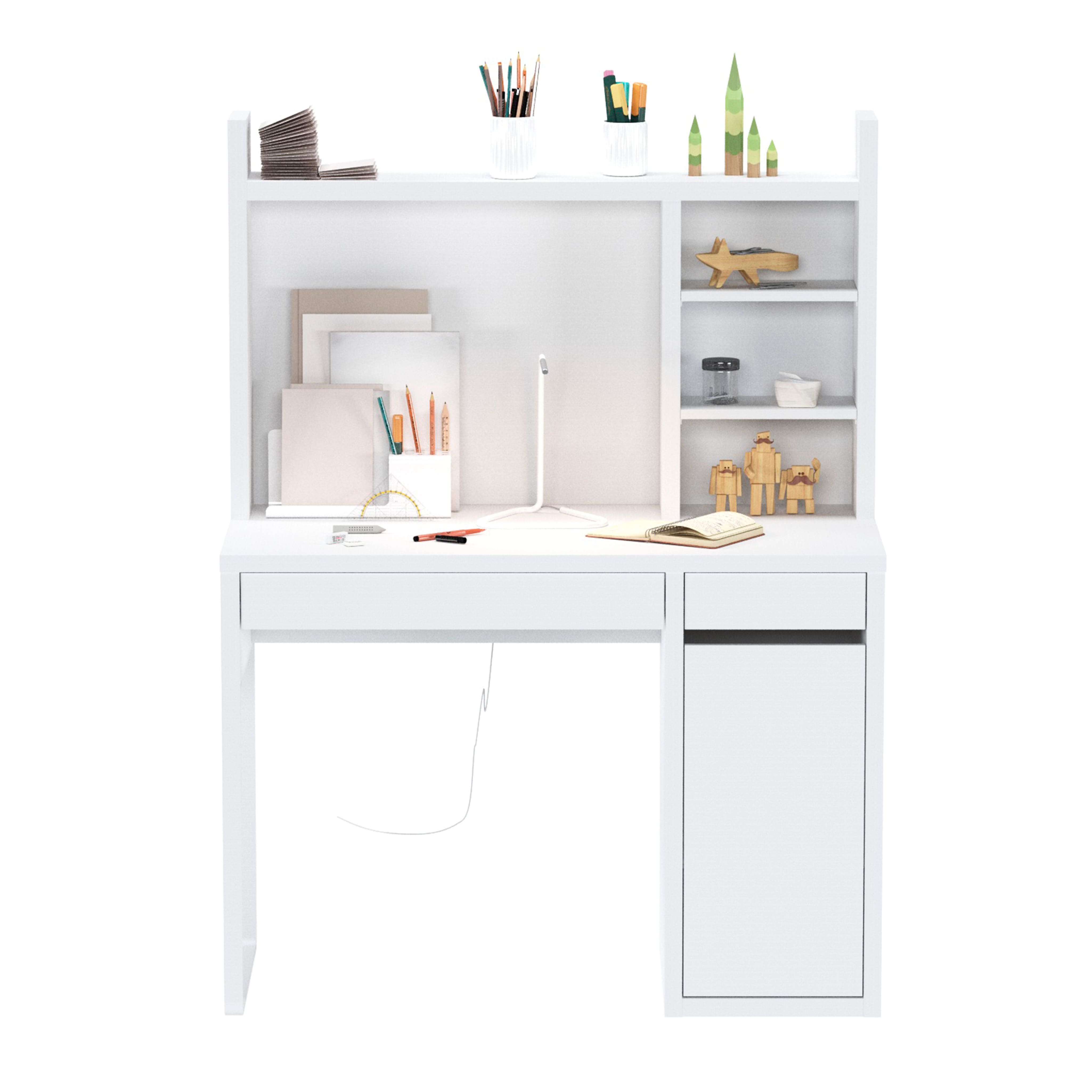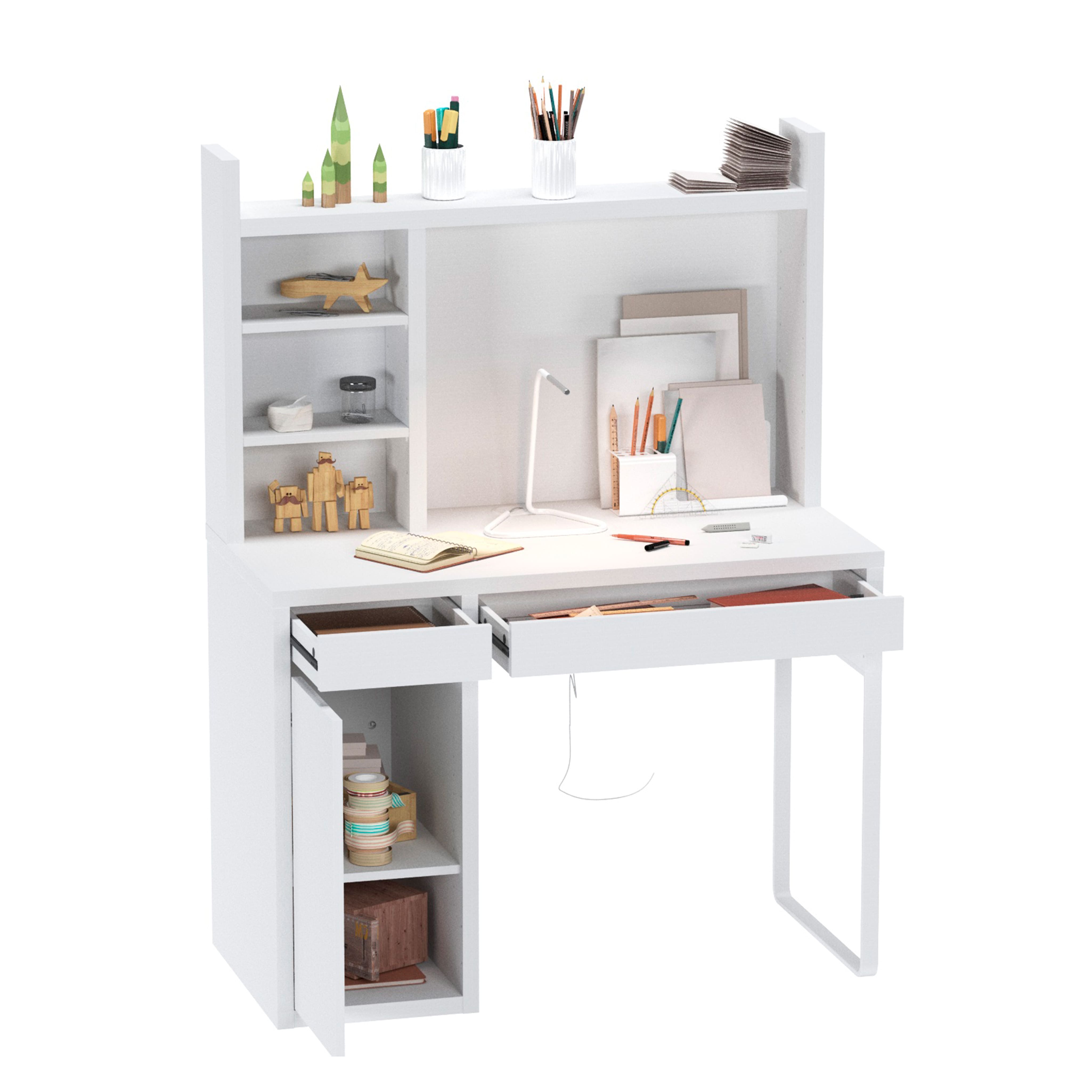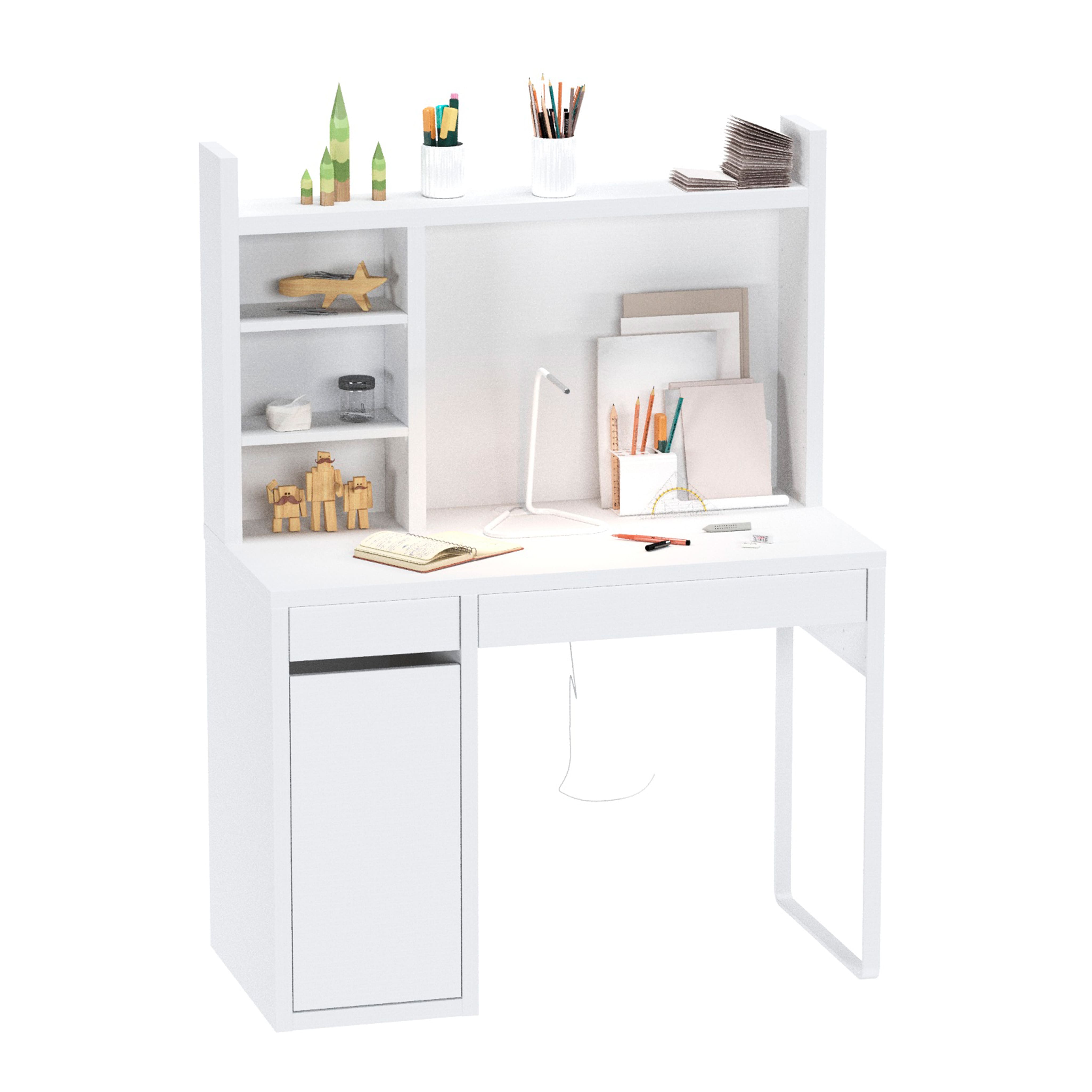 Стол письменный КОМПИ 105, 105х75х50 + Надстройка для стола КОМПИ, 105х65х17, белый