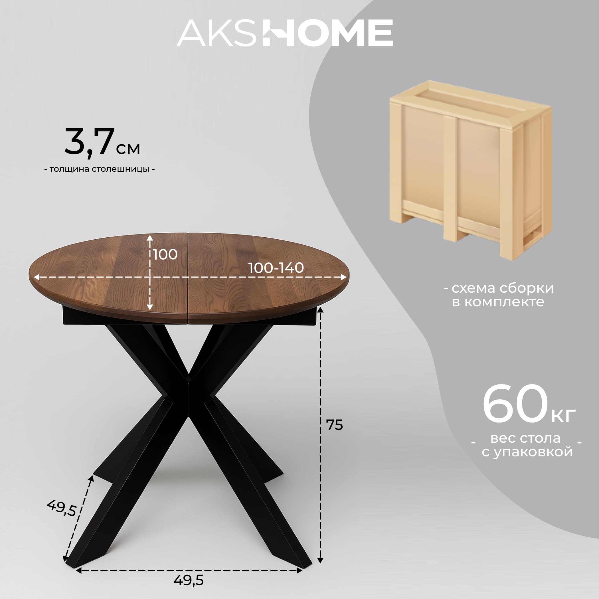 Стол РАУНД раздвижной, d100(140)*75, дуб мореный/черный (ПрР-4 DSW (02) КСЕ/Р-80)