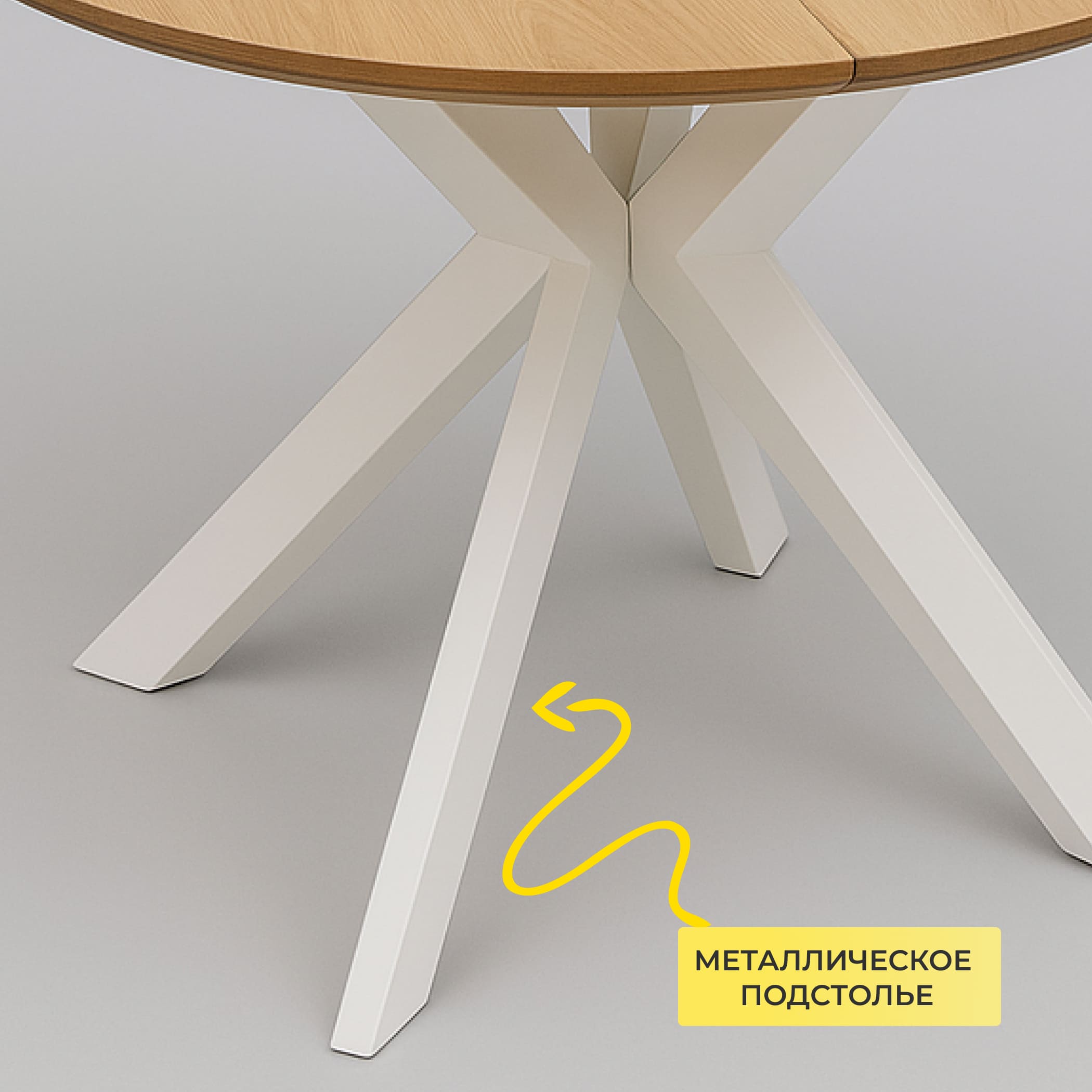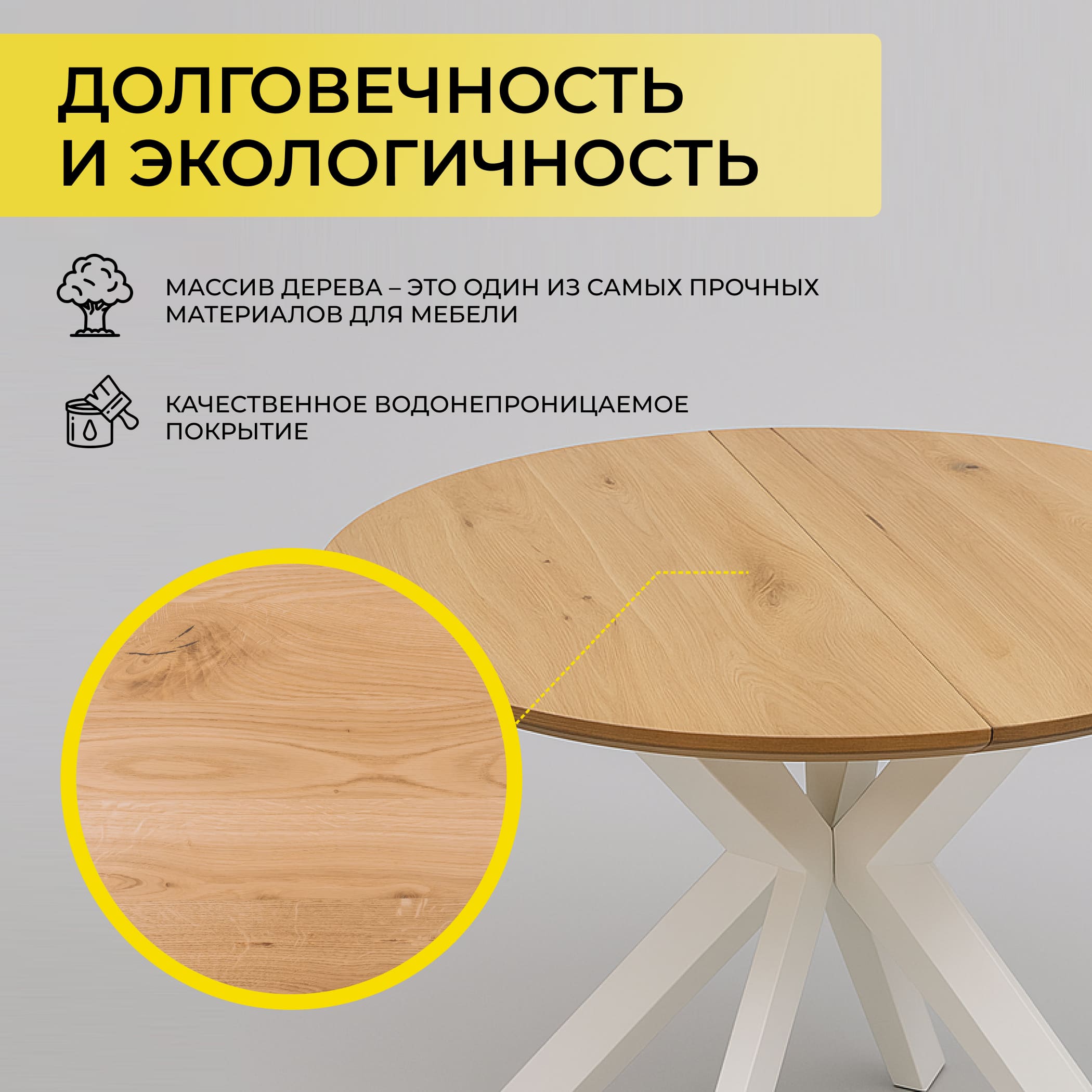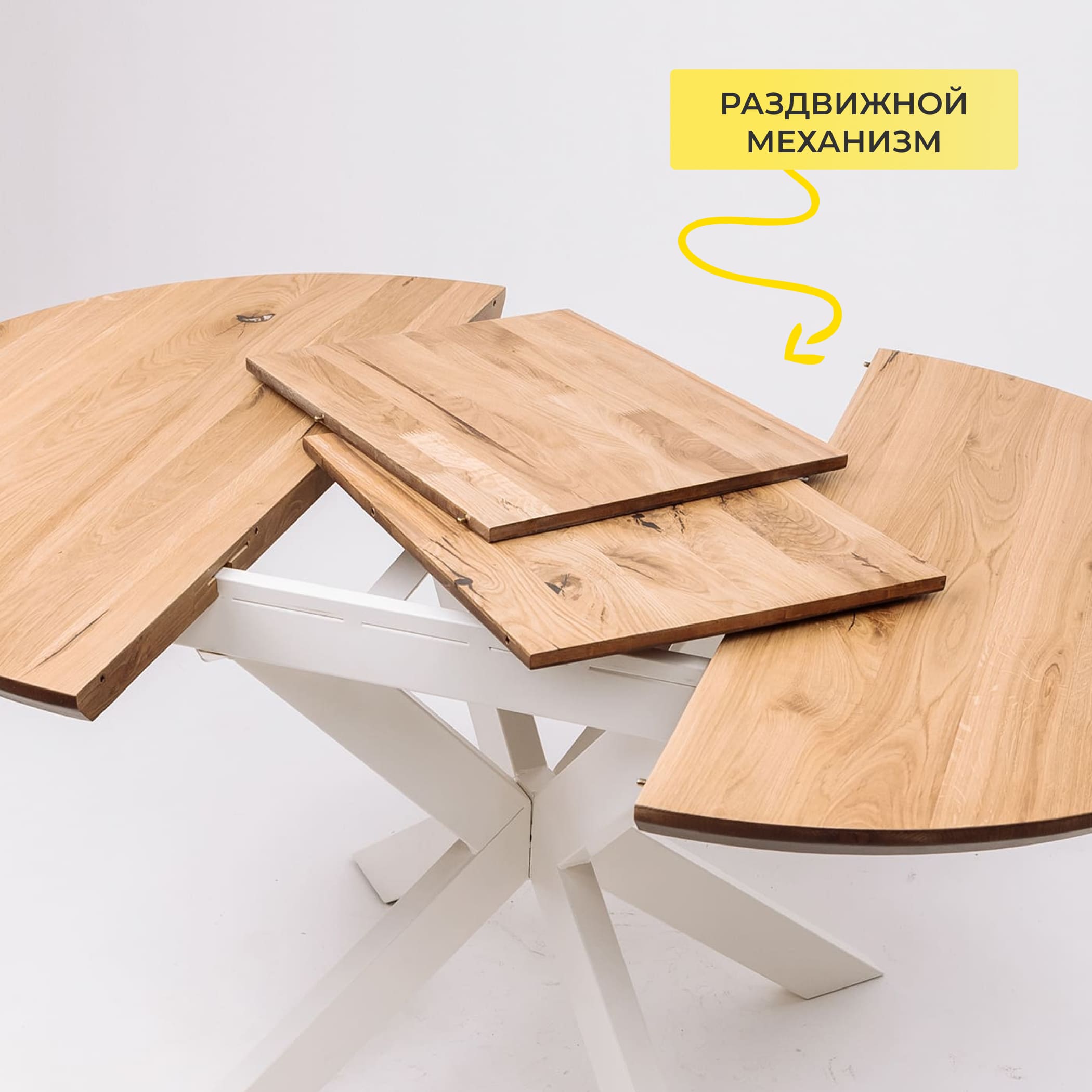 Обеденный стол РАУНД с раскладной столешницей. Круглая столешница толщиной 40 мм выполнена из инженерного массива. При необходимости длину стола можно увеличить на дополнительные 40 см.