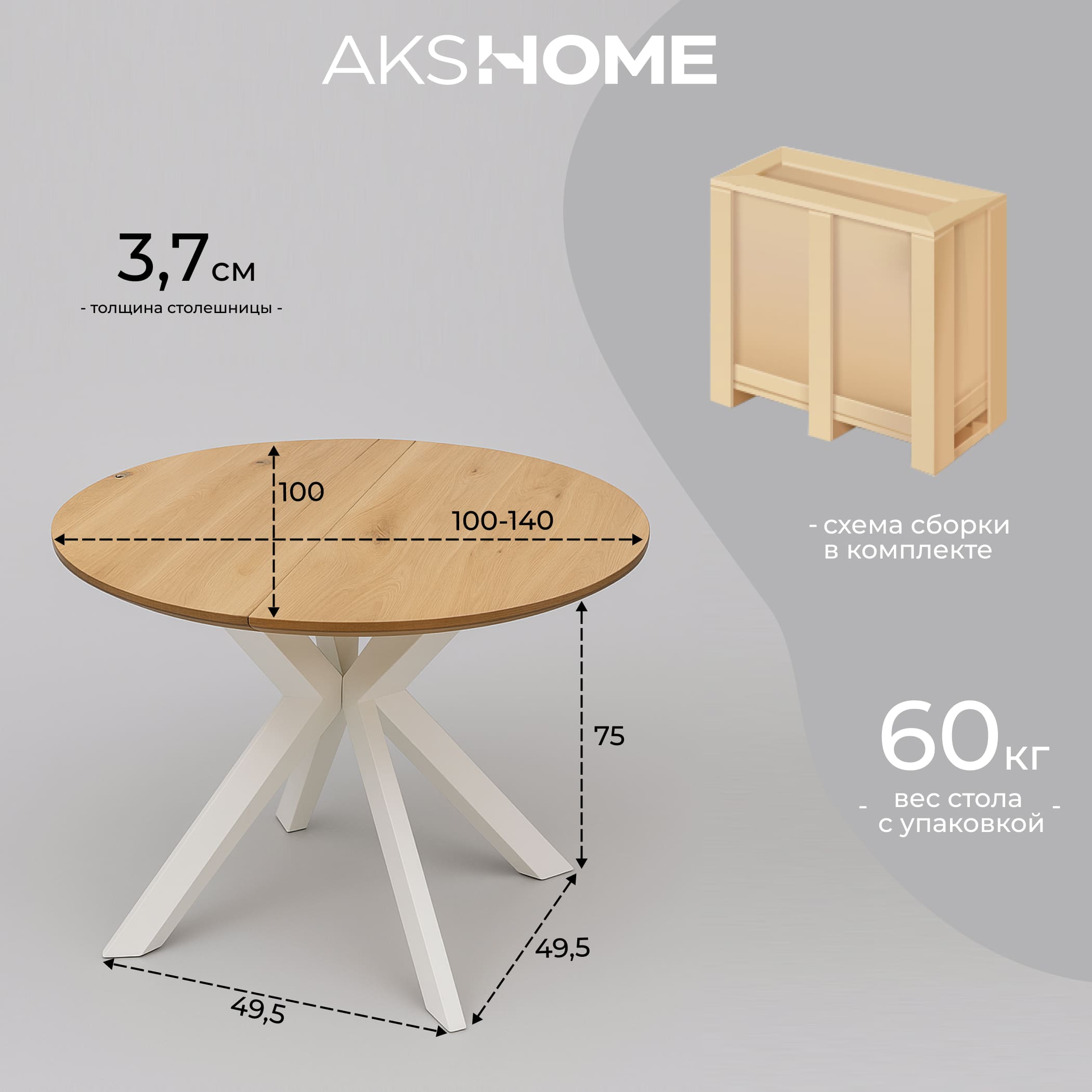 Стол РАУНД раздвижной, d100(140)*75, дуб натуральный/белый (ПрР-4 DSW (02) КСЕ/Р-80)