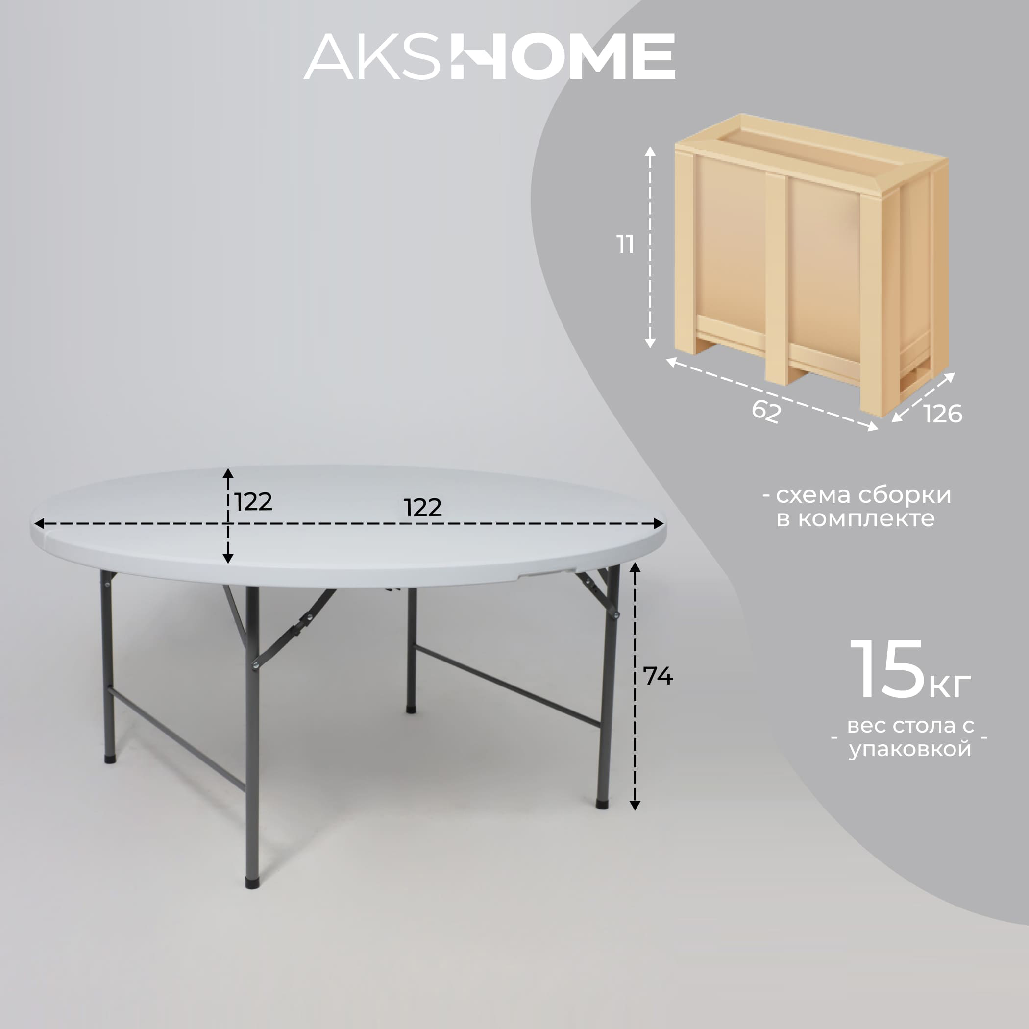 Стол складной D122*74, белый