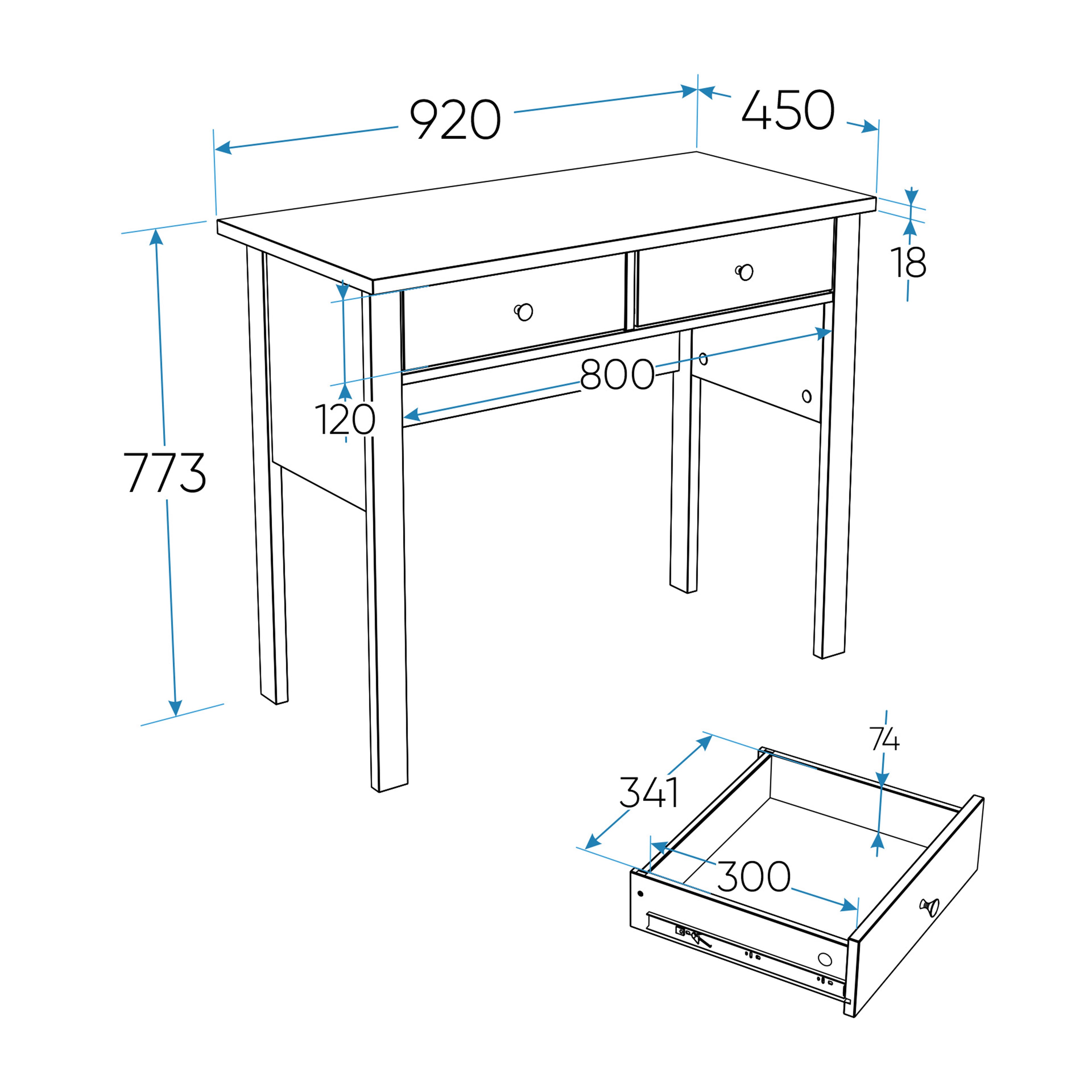 Стол туалетный САГА, 92х45см, темно-бирюзовый/ясень (2.08.06.170.16 RU)