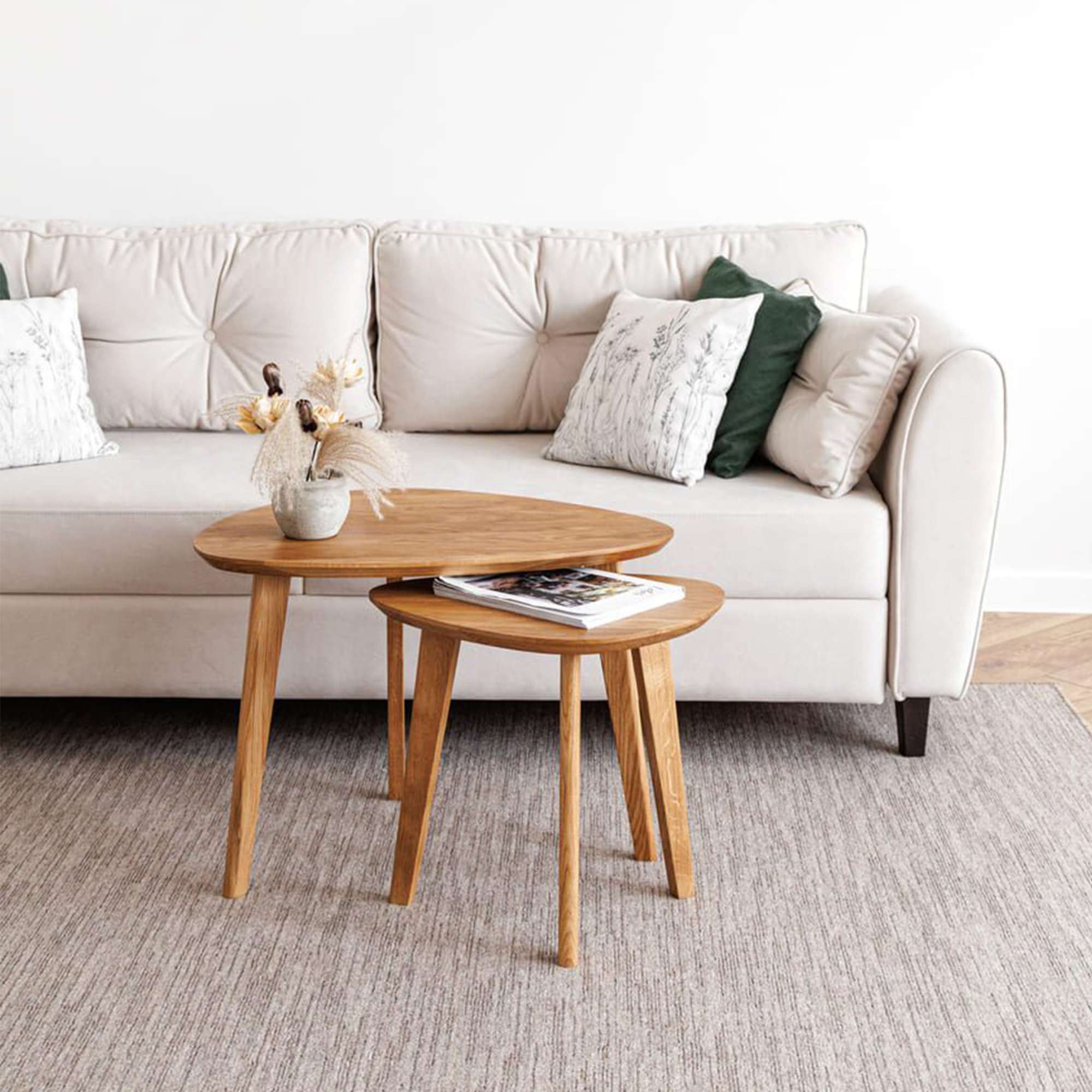 Журнальный столик станет стильным акцентом в интерьере, идеально подходящим как для классических, так и для современных пространств. Кофейный столик создан для тех, кто ищет надежность и качество. На ножках стола установлены фетровые накладки, которые защищают пол от царапин. Массив дуба, используемый для изготовления столешницы и ножек — приятный на ощупь материал, покрытый двумя слоями итальянского масла Borma и специальным воском, которые позволят столу сохранить свой первоначальный вид на протяжении длительного времени.