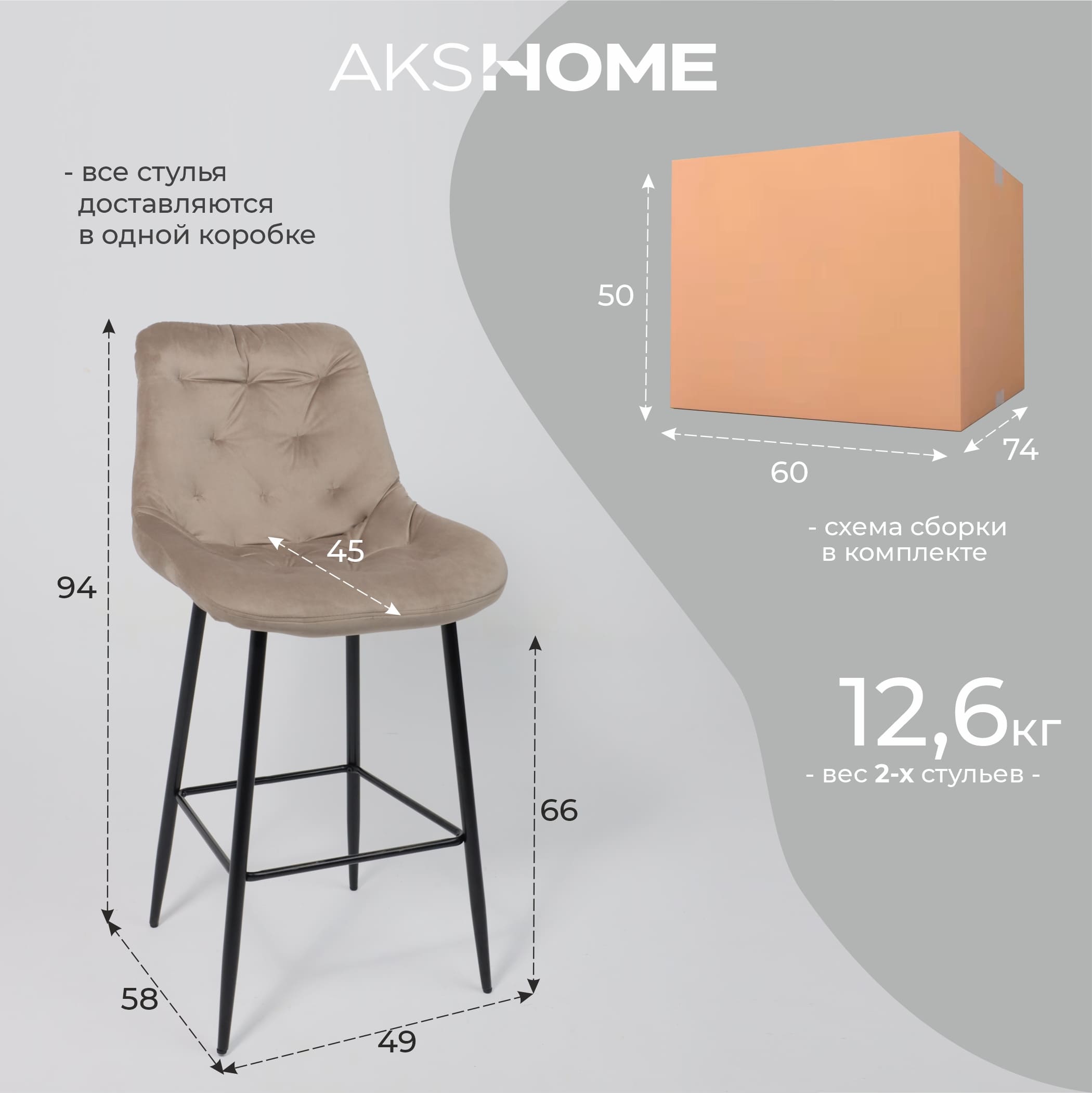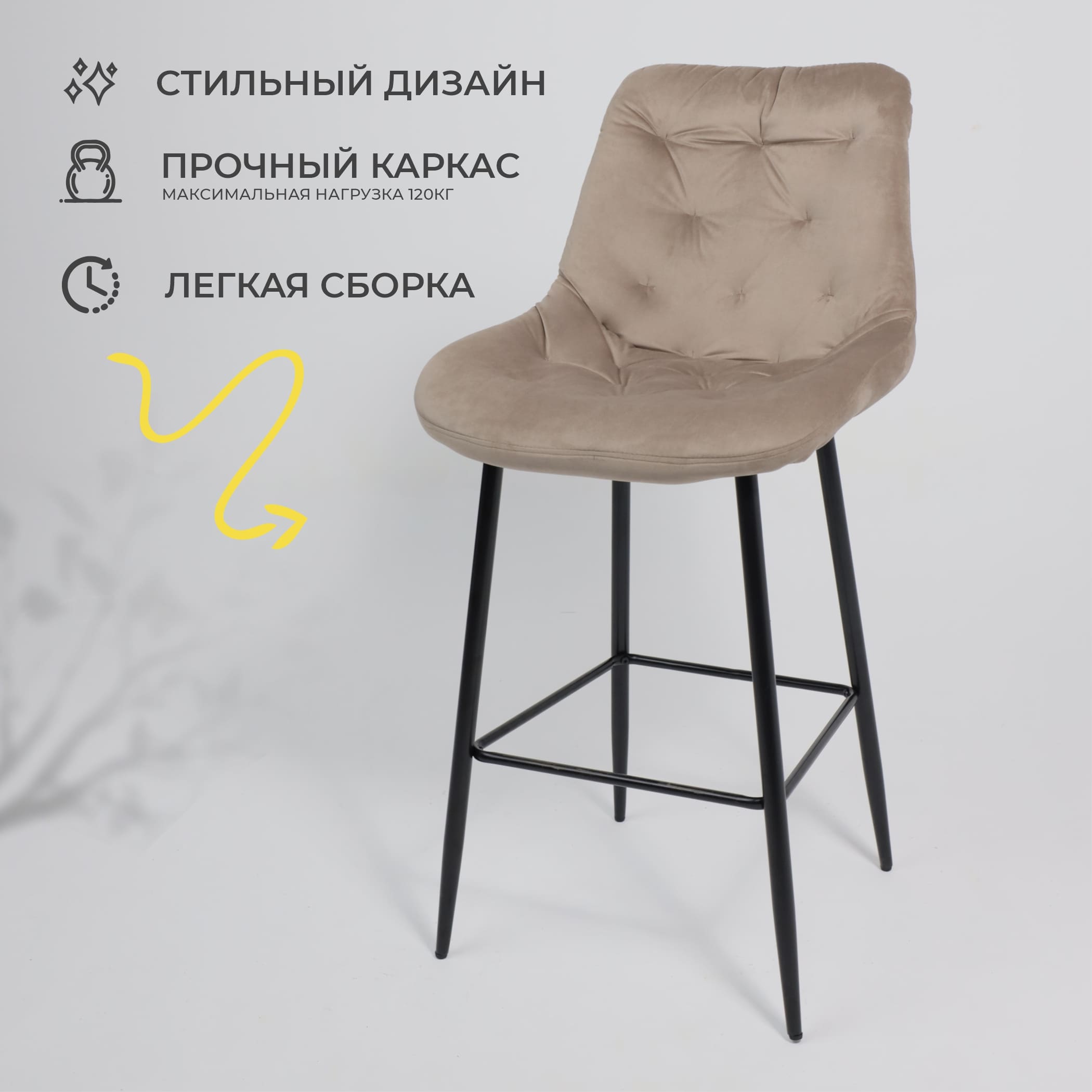 Стул ATINA, барный, бежевый велюр HLR-8/черный