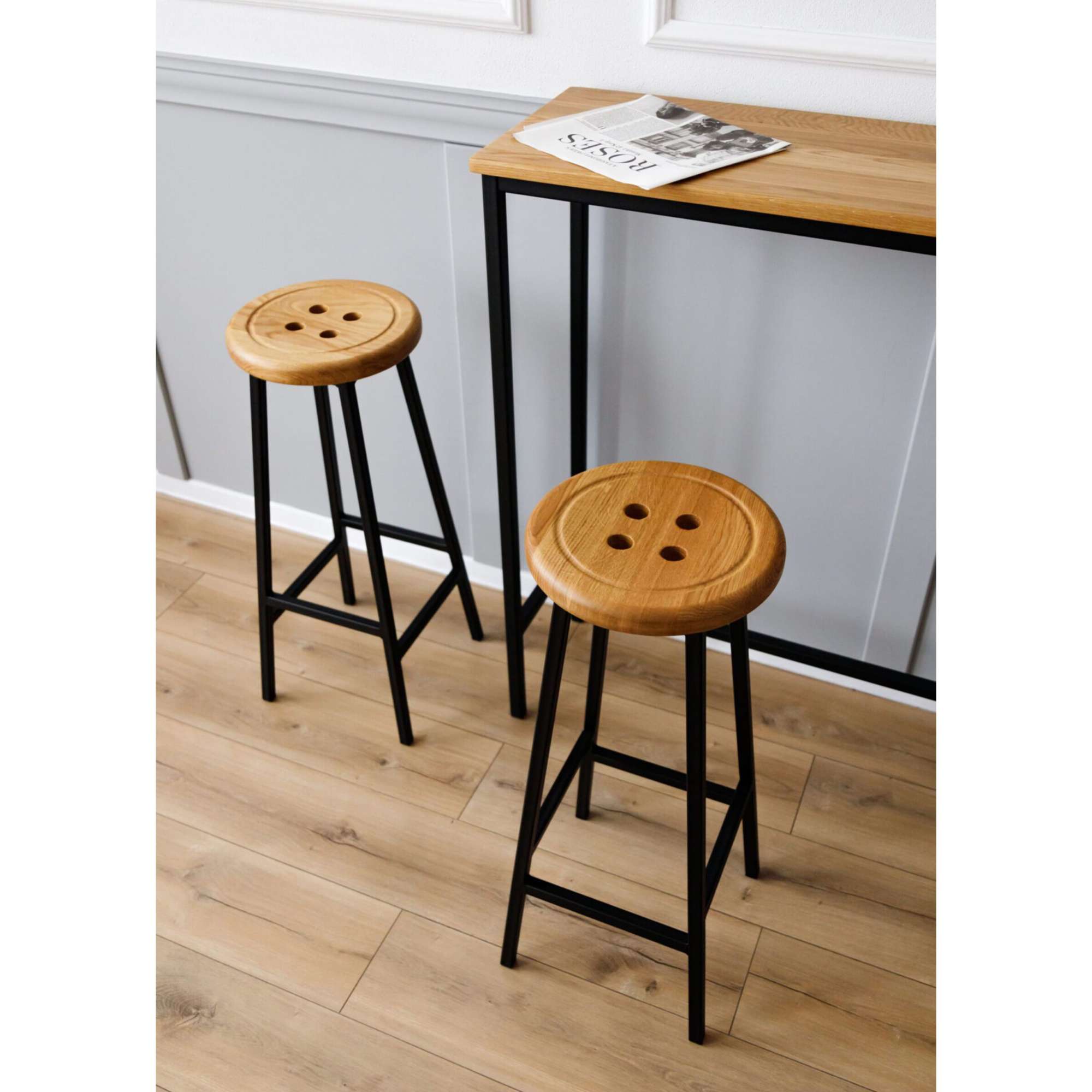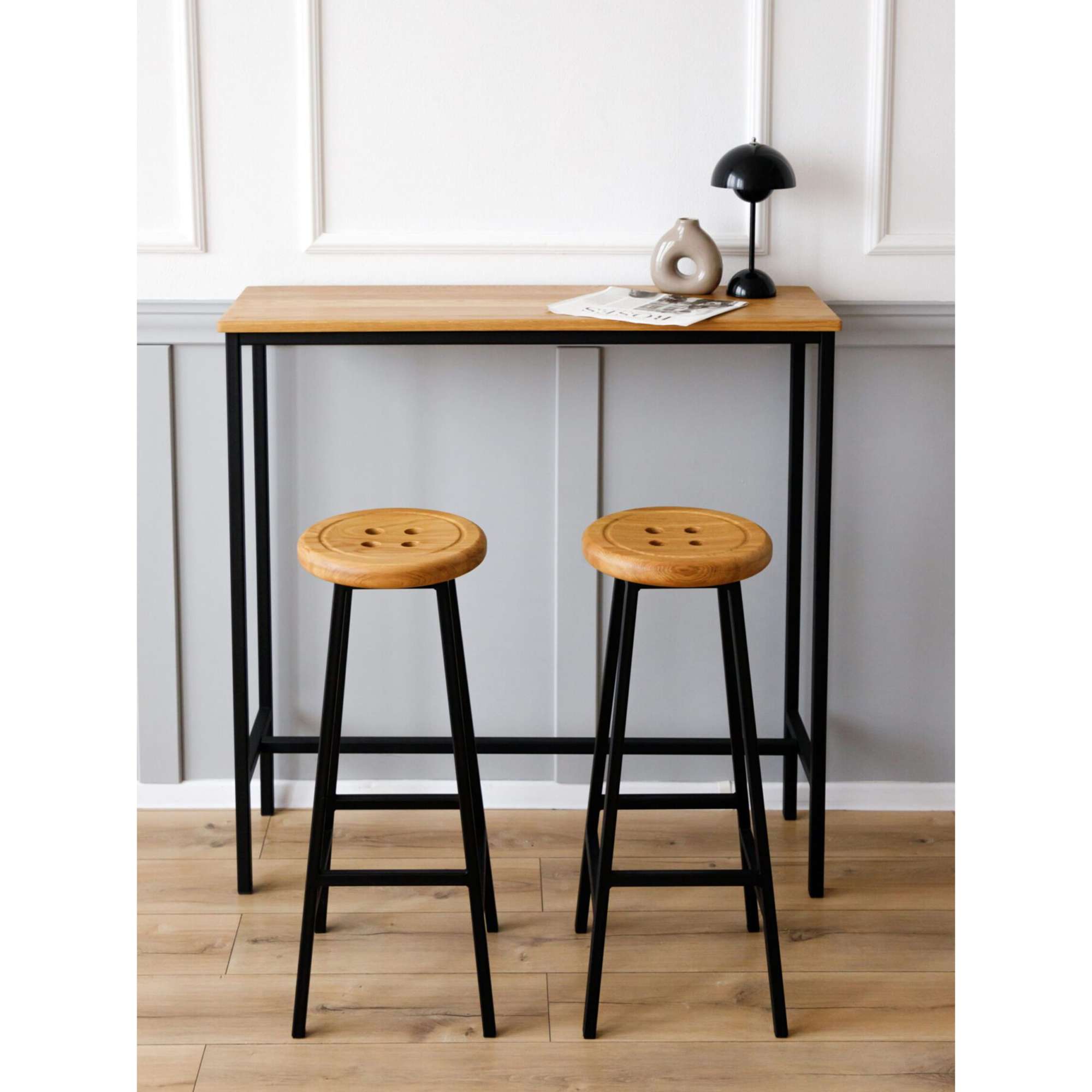 Стул барный BUTTON-78 натуральный/черный