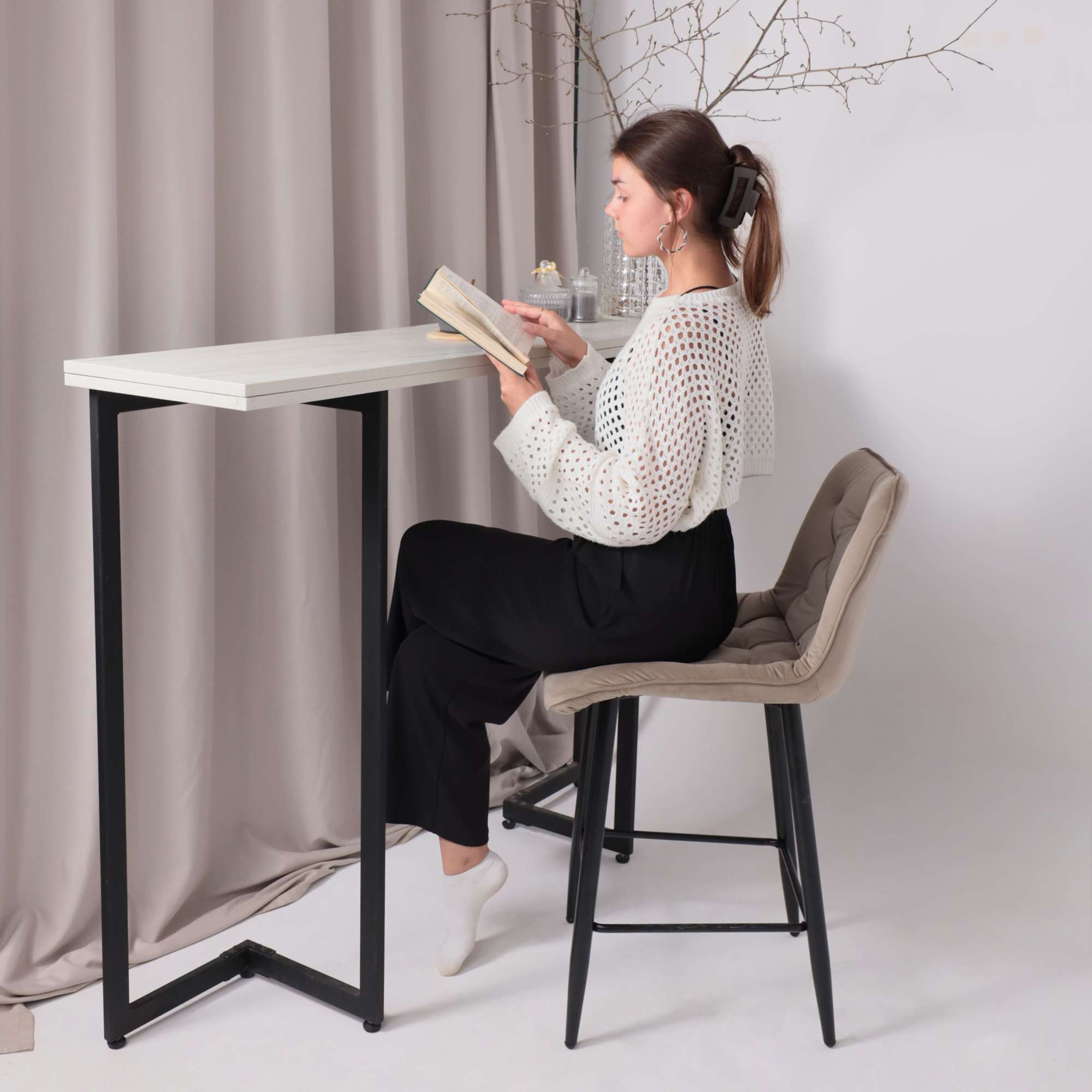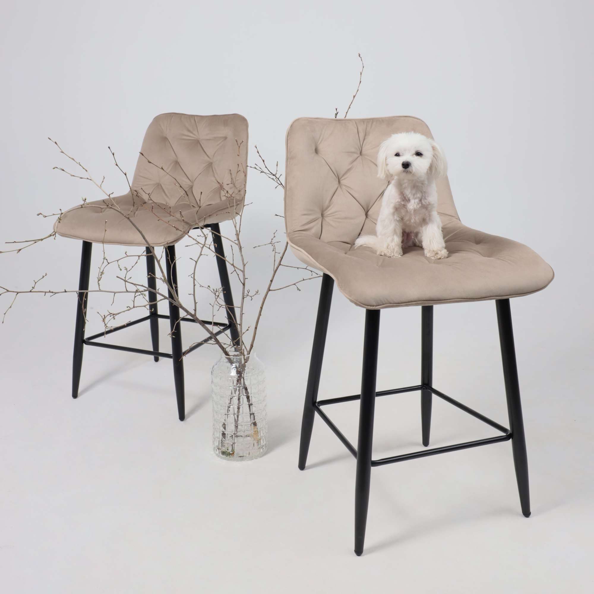 Стул барный VITO, бежевый велюр HLR-08/черный