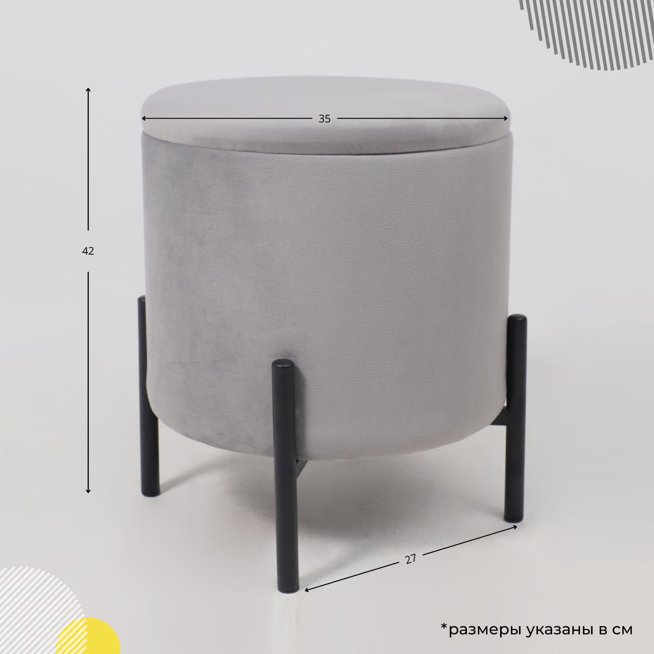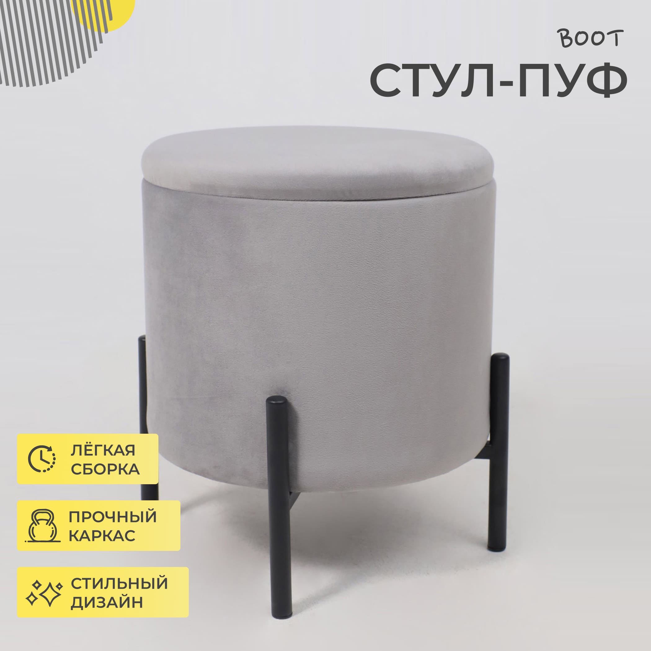 Стул-пуф BOOT, серый велюр MY 180G-60/черный
