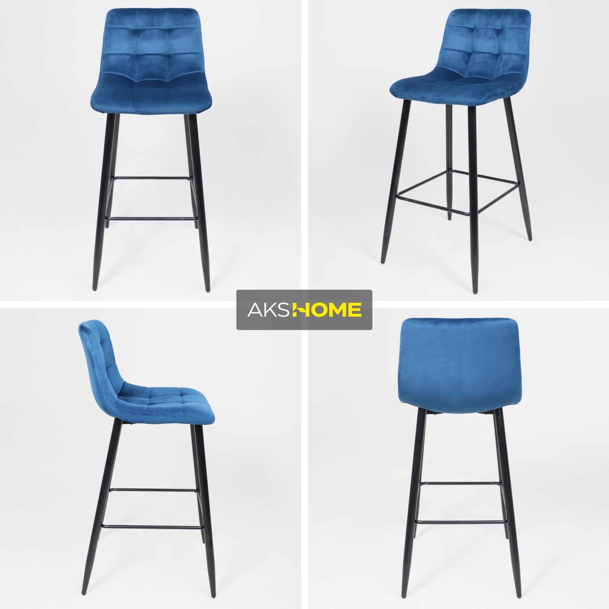 Стул STELLA, барный, синий велюр HLR64/черный