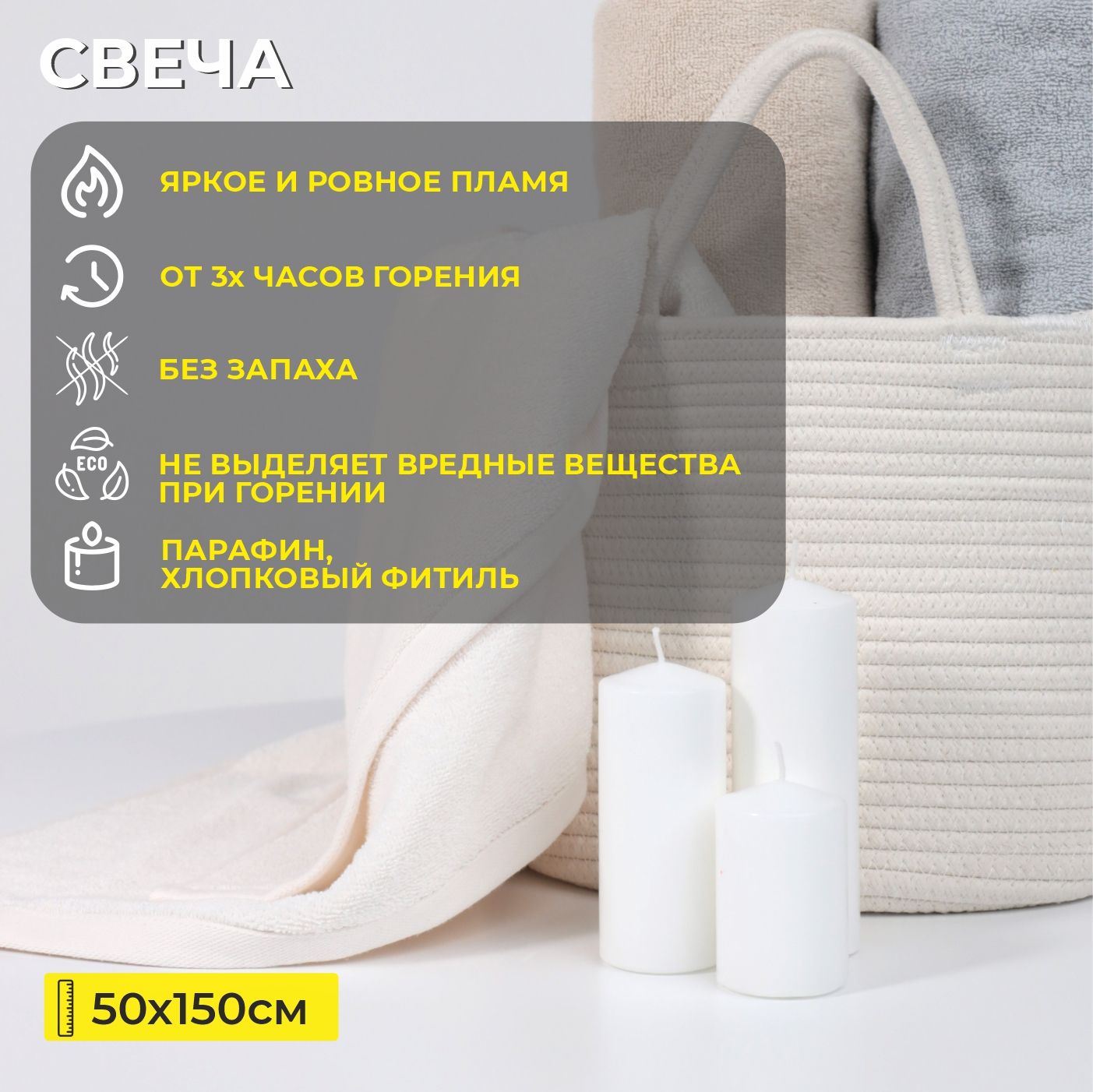 Свеча столб 50*150мм, белая