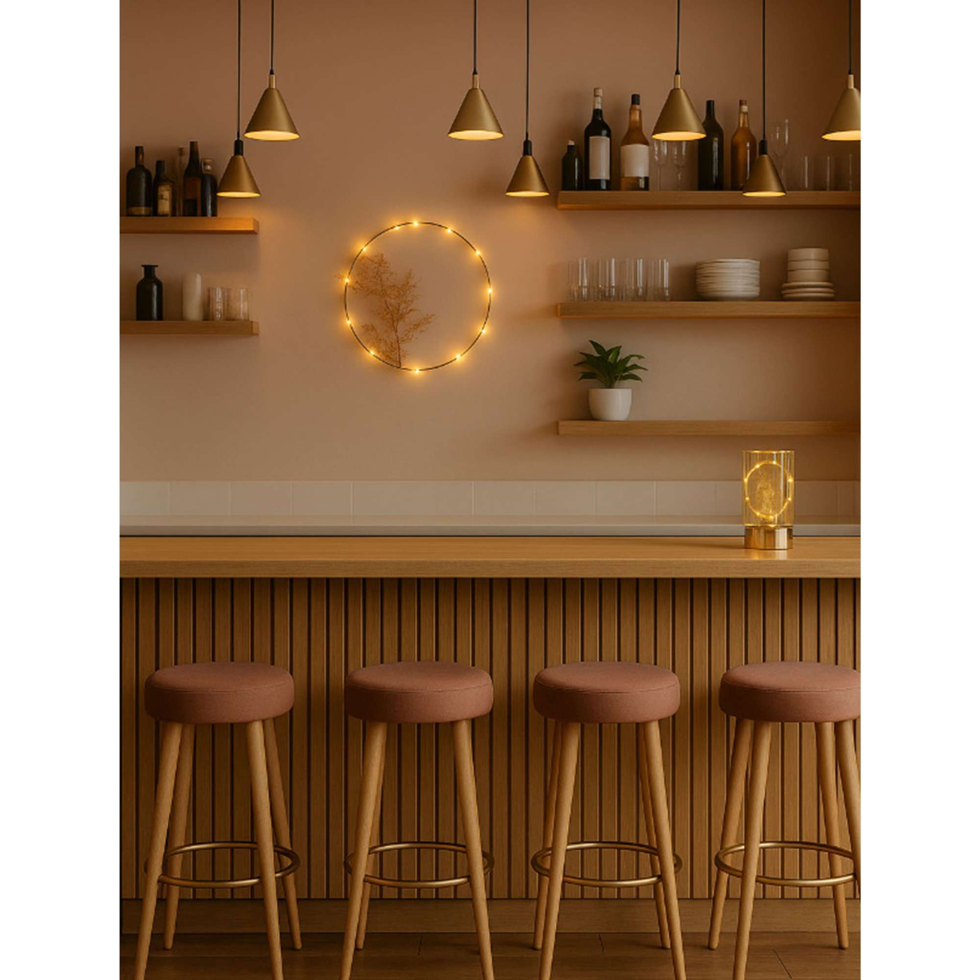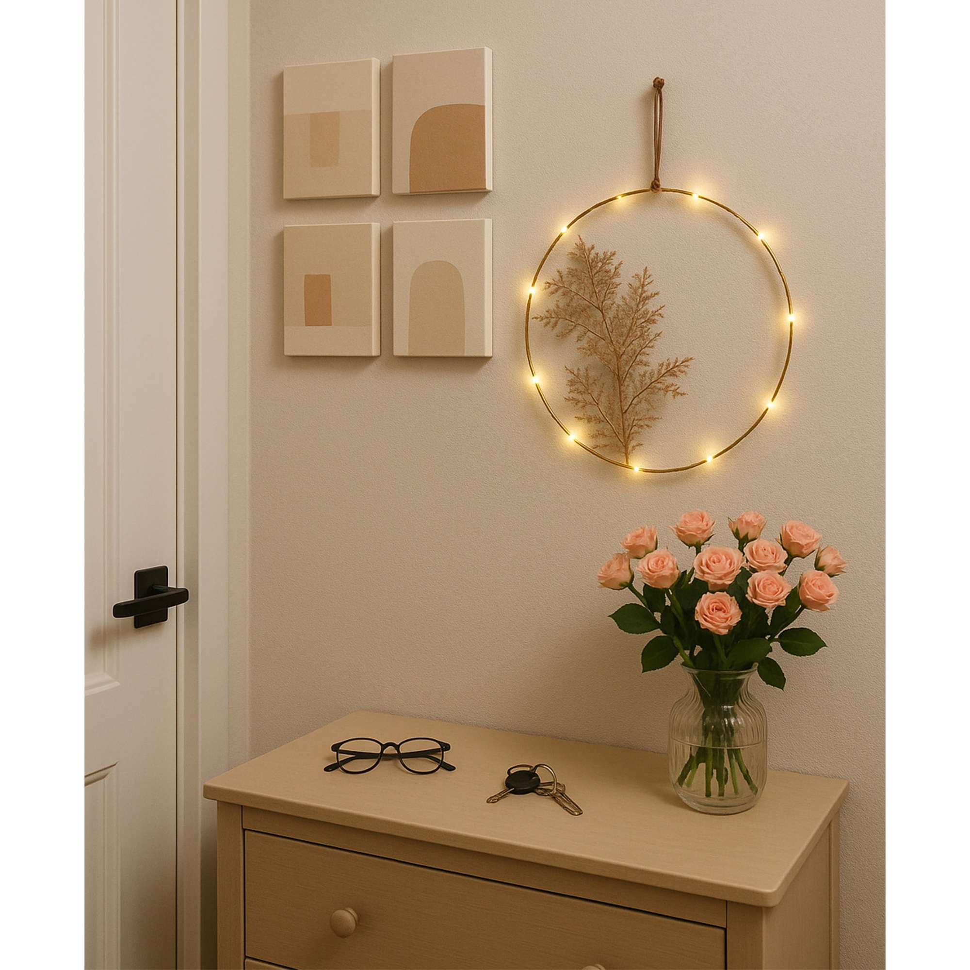 Светодиодный декор AKS тип 7 ( Круг с веткой D20см 13LED, 2АА )