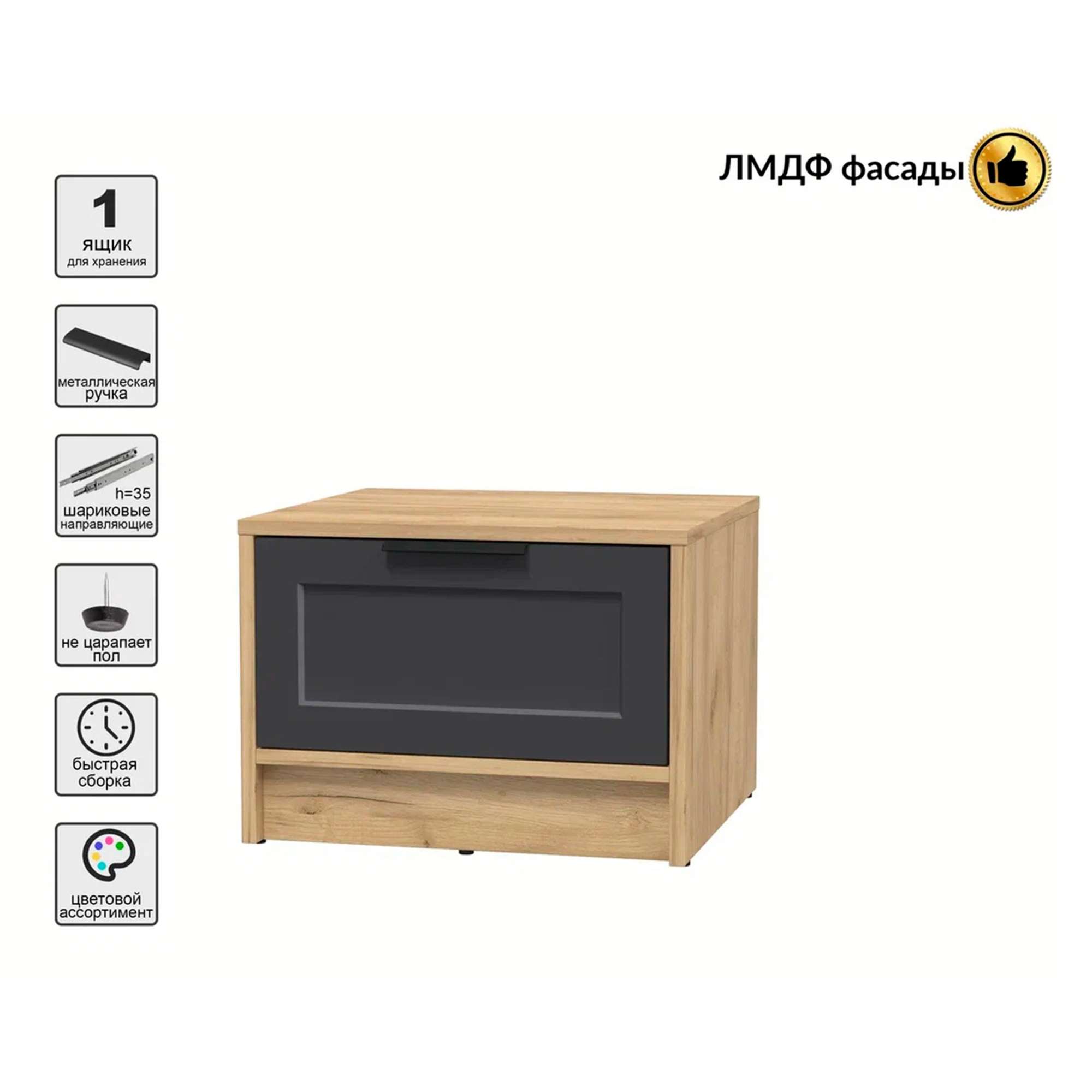 Тумба прикроватная КОНЦЕПТ Тренд КТ-ТК1-35, к.Дуб золотой/ф.Пепел (В348хШ477хГ451мм)
