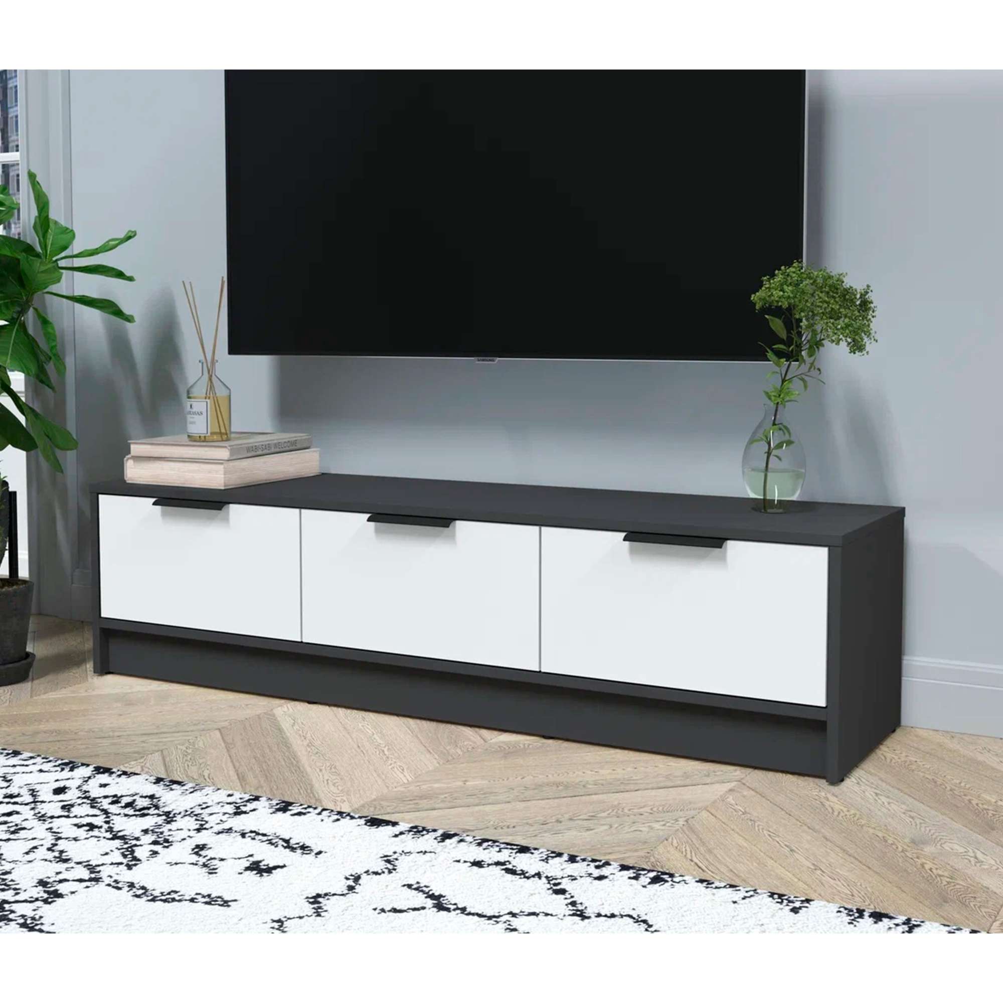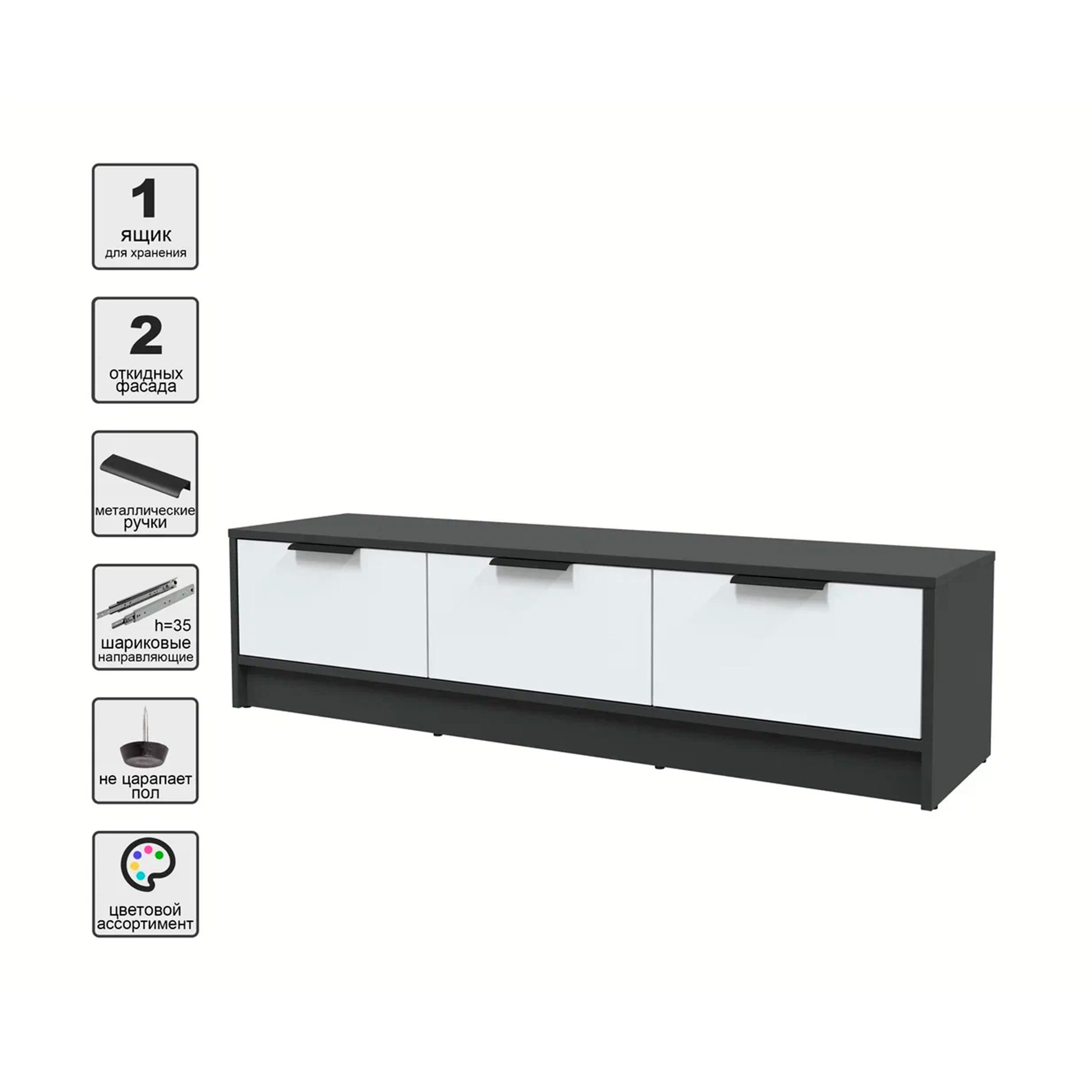 Тумба(ТВ) КОНЦЕПТ КТ-ТВ3-35, к.Антрацит/ф.Белый (В348хШ1360хГ355мм)