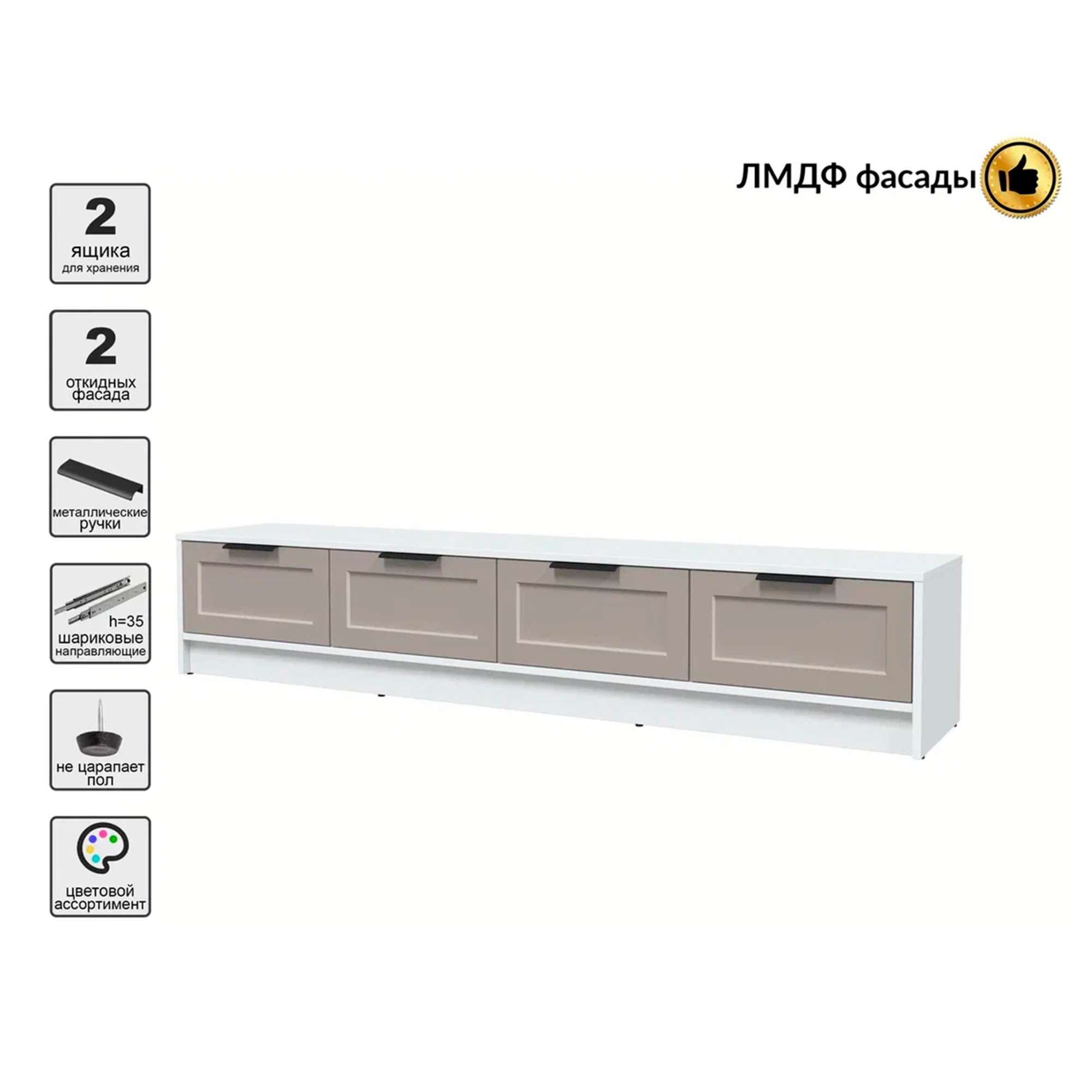 Тумба(ТВ) КОНЦЕПТ Тренд КТ-ТВ4-35, к.Белый/ф.Луна (В348хШ1800хГ355мм)