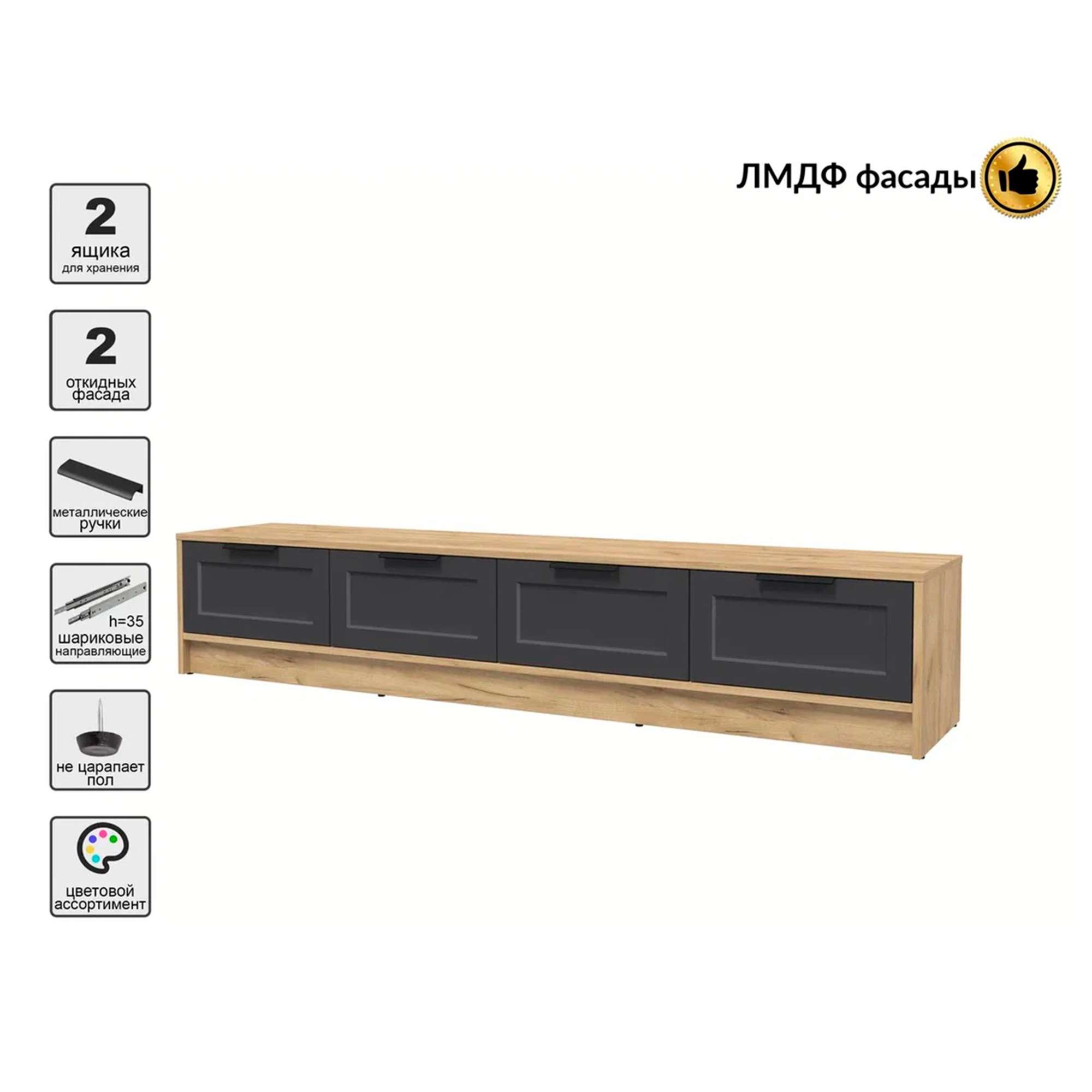 Тумба(ТВ) КОНЦЕПТ Тренд КТ-ТВ4-35, к.Дуб золотой/ф.Пепел (В348хШ1800хГ355мм)