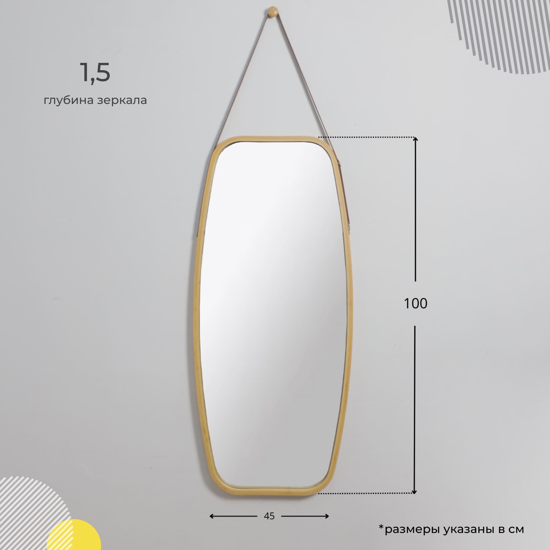 Зеркало подвесное LUMINARY, бамбук
